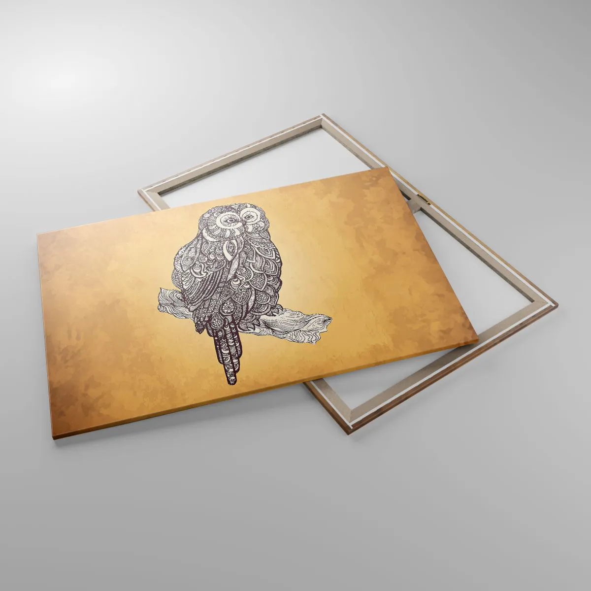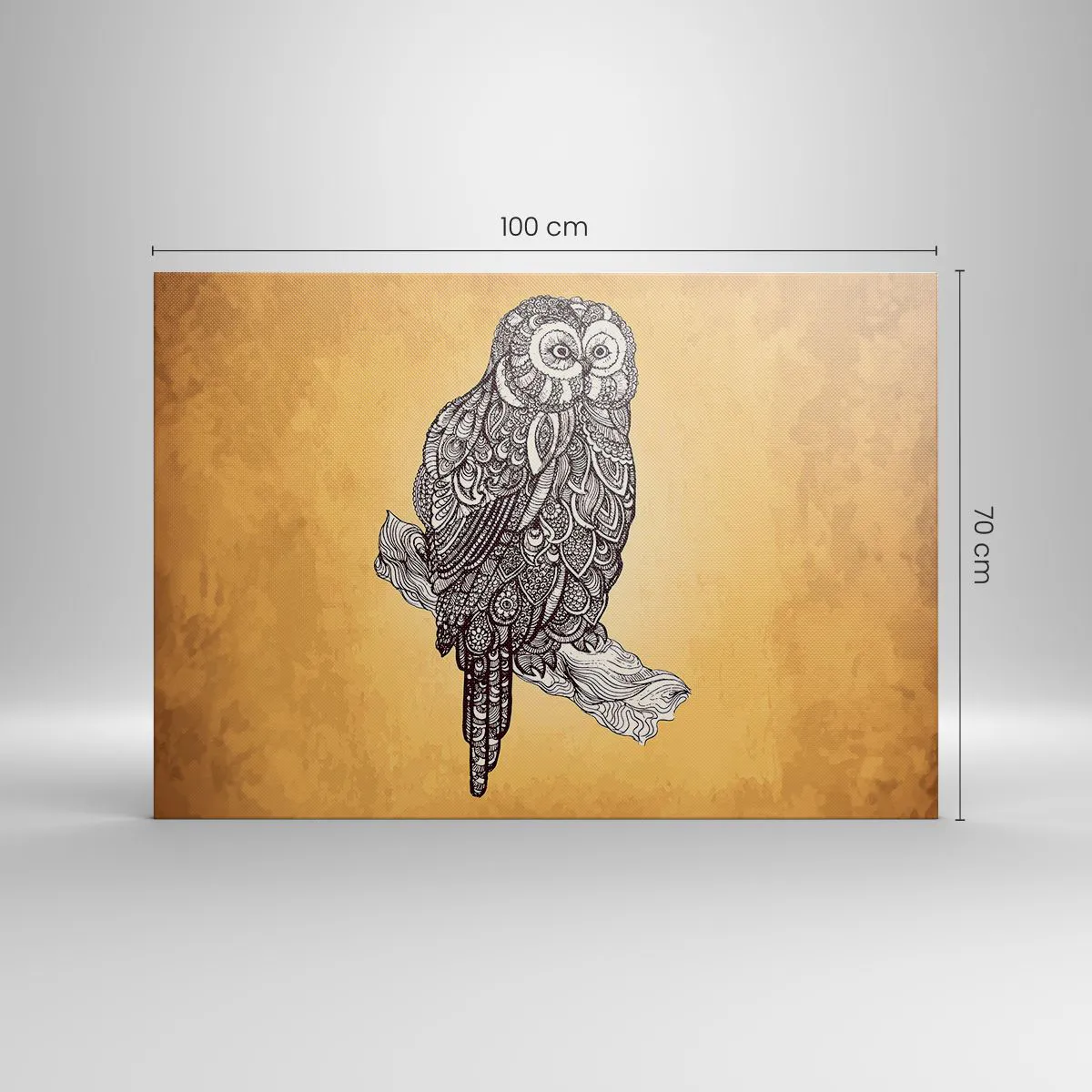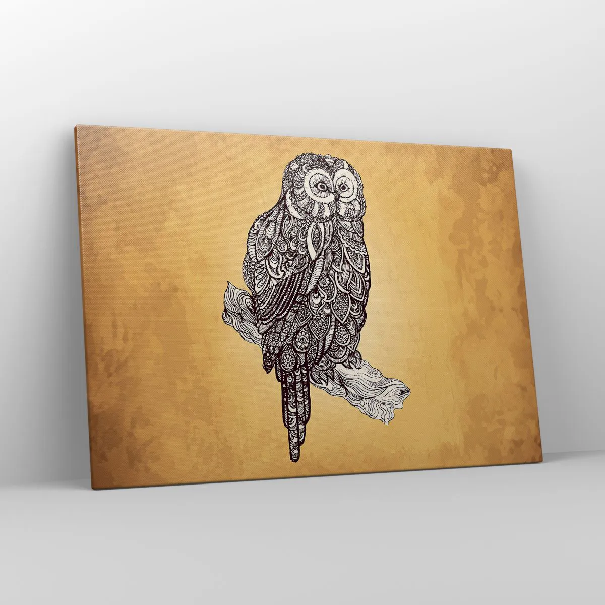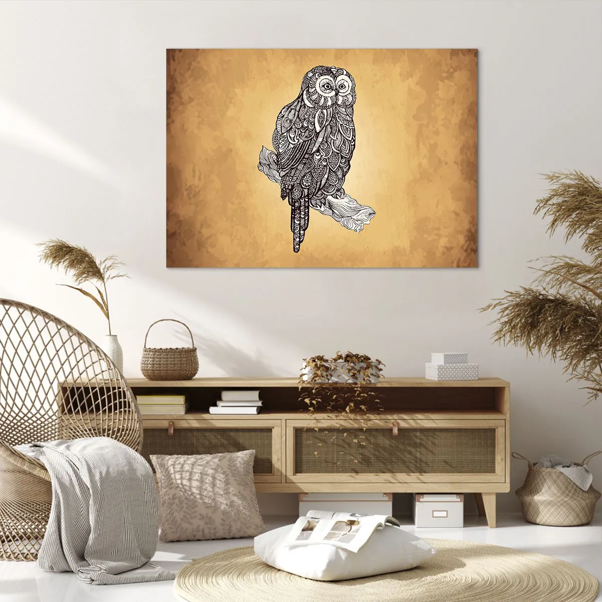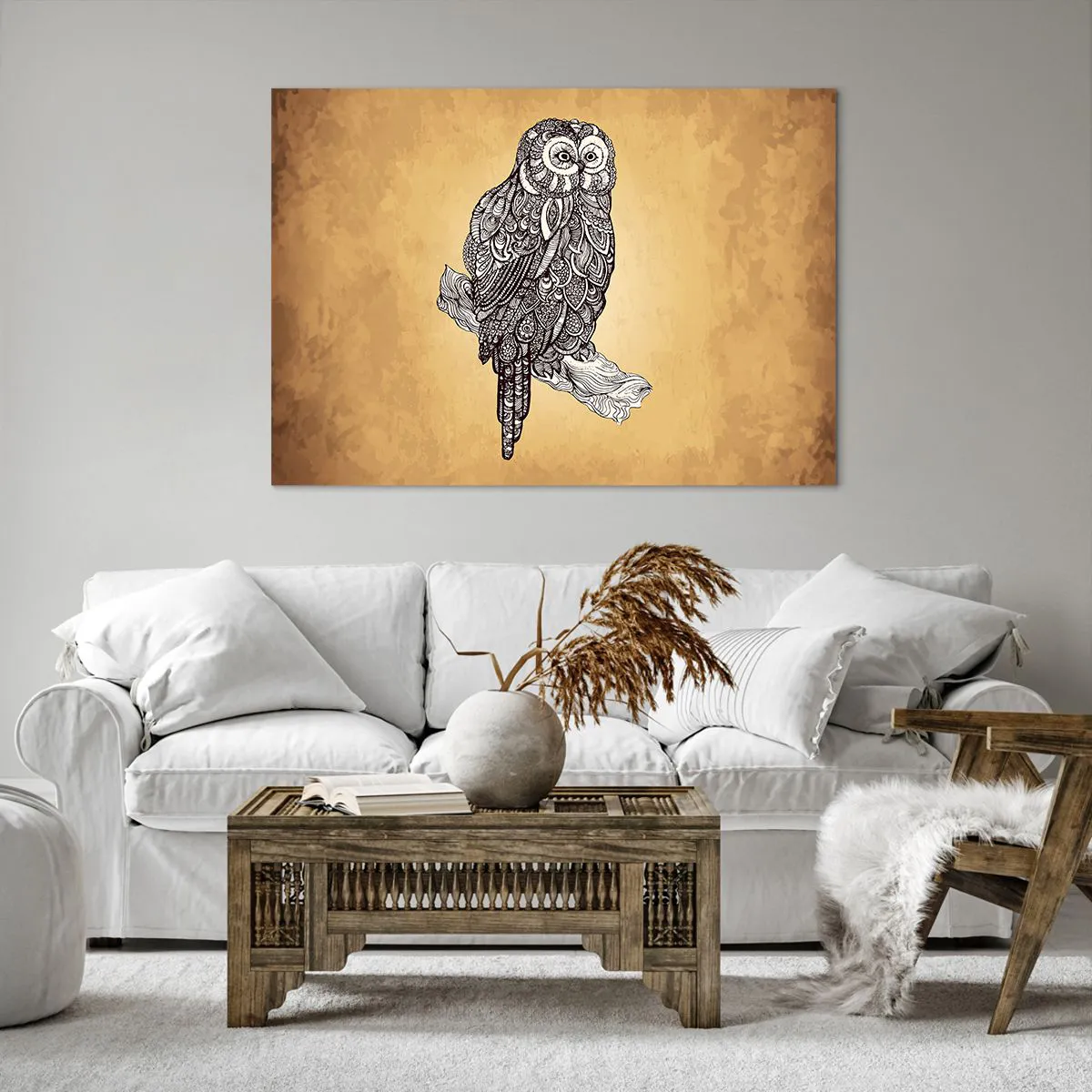 Bild auf Leinwand - Leinwandbild - Eine Eule im Ornamentstil auf beigem Hintergrund - 100x70cm - Kunstvolle Ornamente der Weisheit - Moderne Wanddekoration für Wohnzimmer und Schlafzimmer ARTTOR
