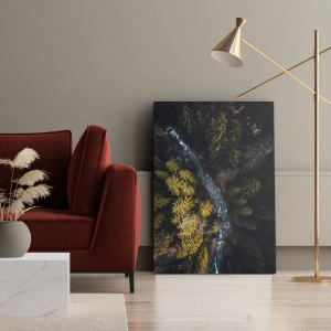 Die Leinwand wird über den Rahmen gespannt. Die Seiten und Kanten werden gedruckt, um das Bild fortzusetzen. Das Bild ist fertig zum Aufhängen an der Wand. Jedes Produkt hat einen am Rahmen befestigten Anhänger und ein Montageset (Schraube + Stift).