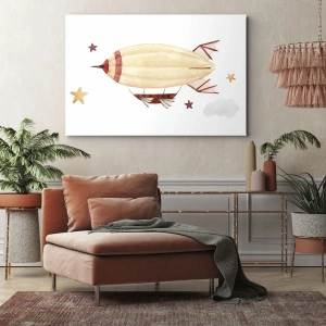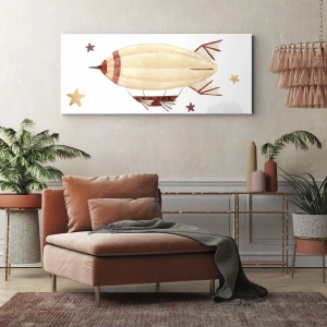 Bild auf Leinwand - Leinwandbild - Ein handbemaltes Luftschiff vor Sternenhimmel - 140x50cm - Luftschiff - Moderne Wanddekoration für Wohnzimmer und Schlafzimmer ARTTOR