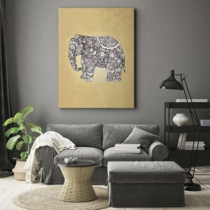 Das Elefantenmotiv, ein Symbol für Weisheit, Stärke und Frieden, bringt Harmonie und positive Energie in den Raum. Der Detailreichtum und die zarten Linien des Musters machen das Gemälde zu einer idealen Wahl für Liebhaber von Kunst, Natur und orientalischen Motiven. Der beige Hintergrund betont die Universalität der Komposition, wodurch das Gemälde perfekt in moderne und klassische Innenräume passt.
