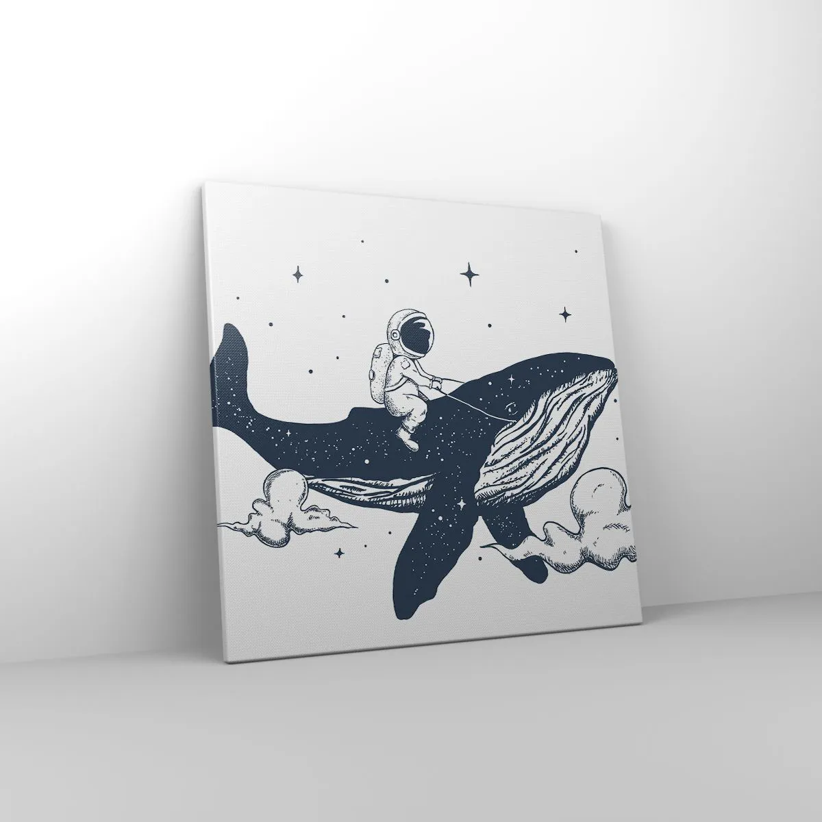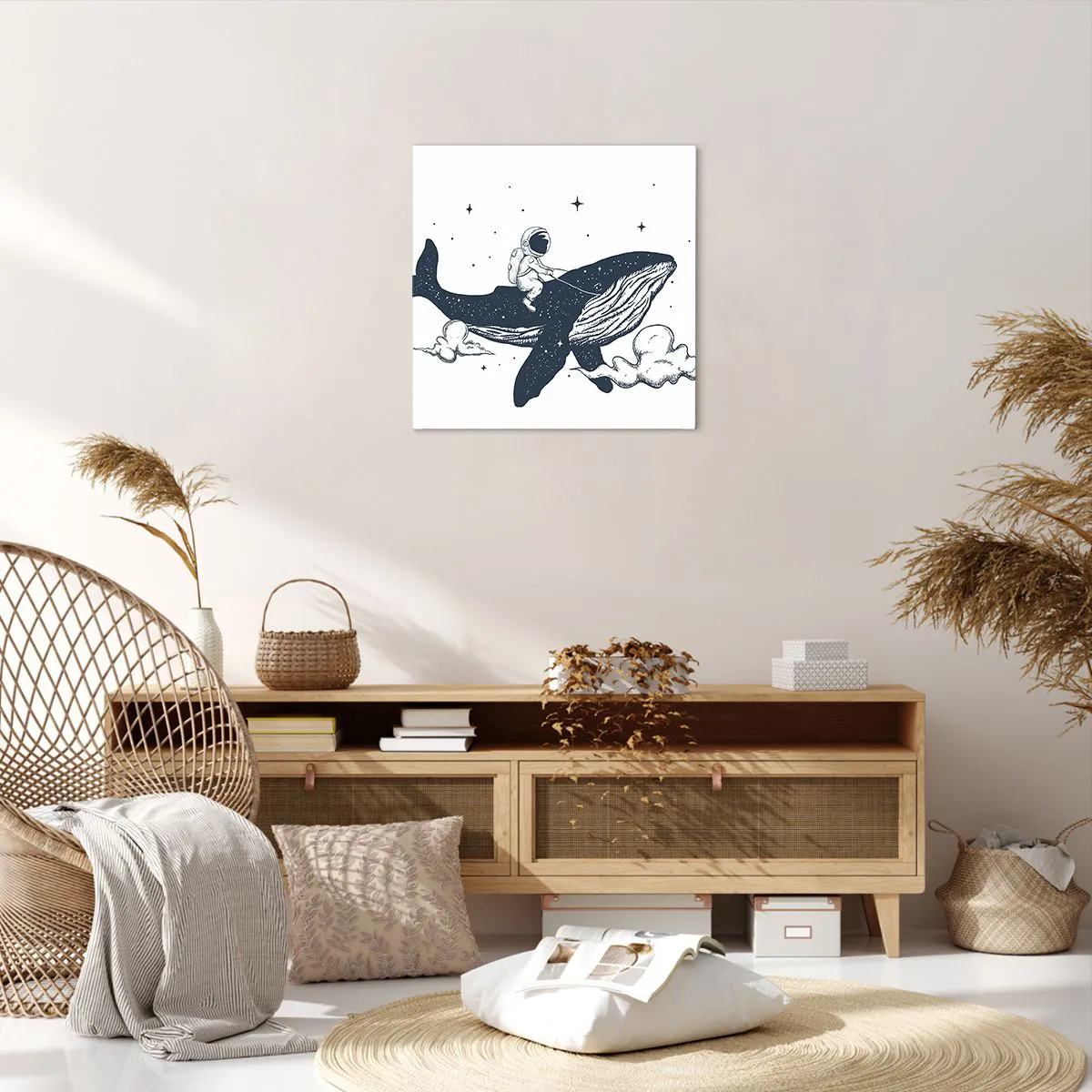 • Wal, Astronaut, Fantasie, Schwarzweiß, Fantasy, Weltraum und Astronomie, Tiere, Für das Büro, für das Arbeitszimmer, für das Esszimmer, für das Jugendzimmer, für den Flur, für das Wohnzimmer, für das Schlafzimmer, Weiß, Schwarz, Schwarz und Weiß, Quadrat