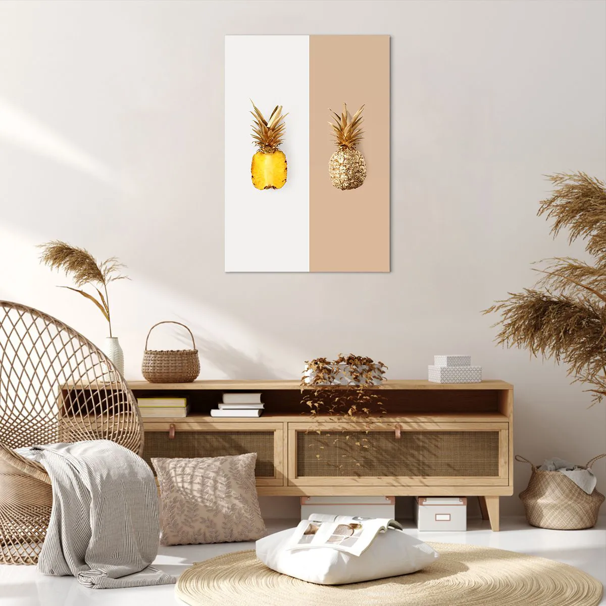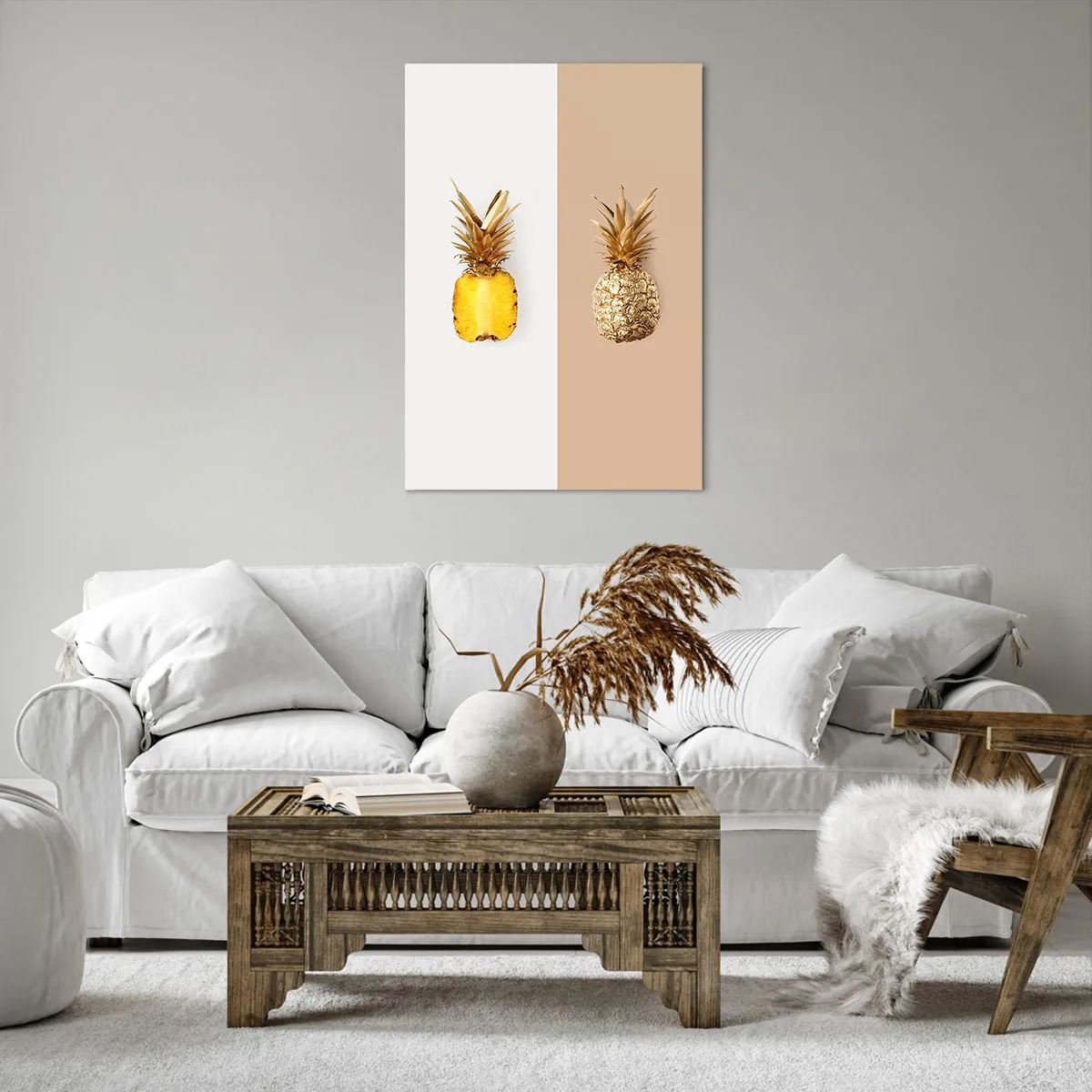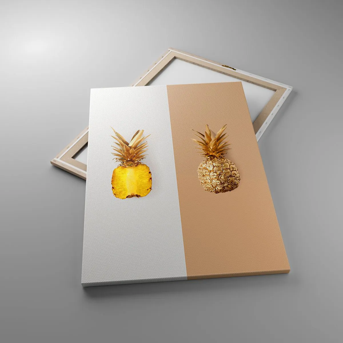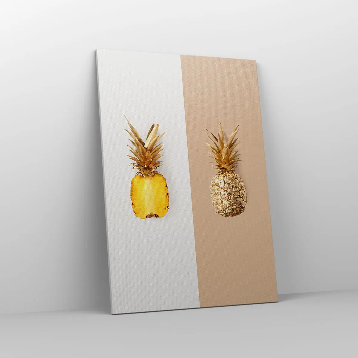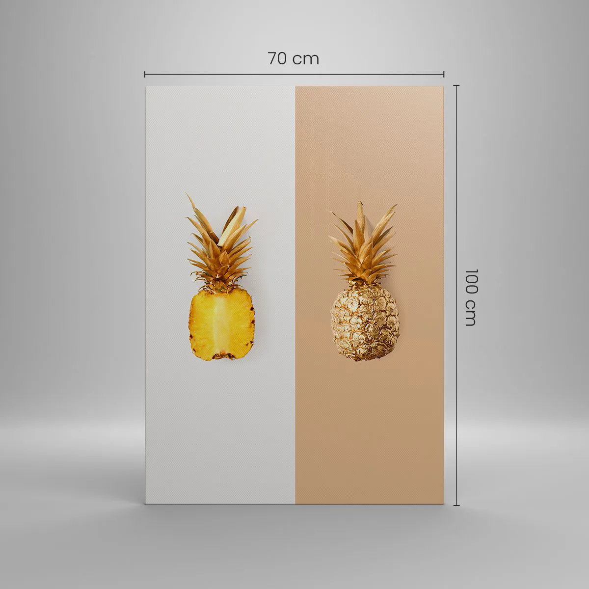 Bild auf Leinwand - Leinwandbild - Eine halbe frische, goldene Ananas auf kontrastierendem Hintergrund - 70x100cm - Ananas für uns - Moderne Wanddekoration für Wohnzimmer und Schlafzimmer ARTTOR