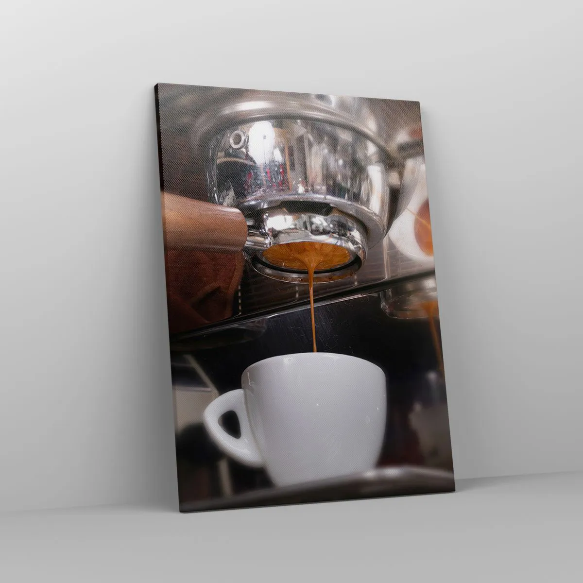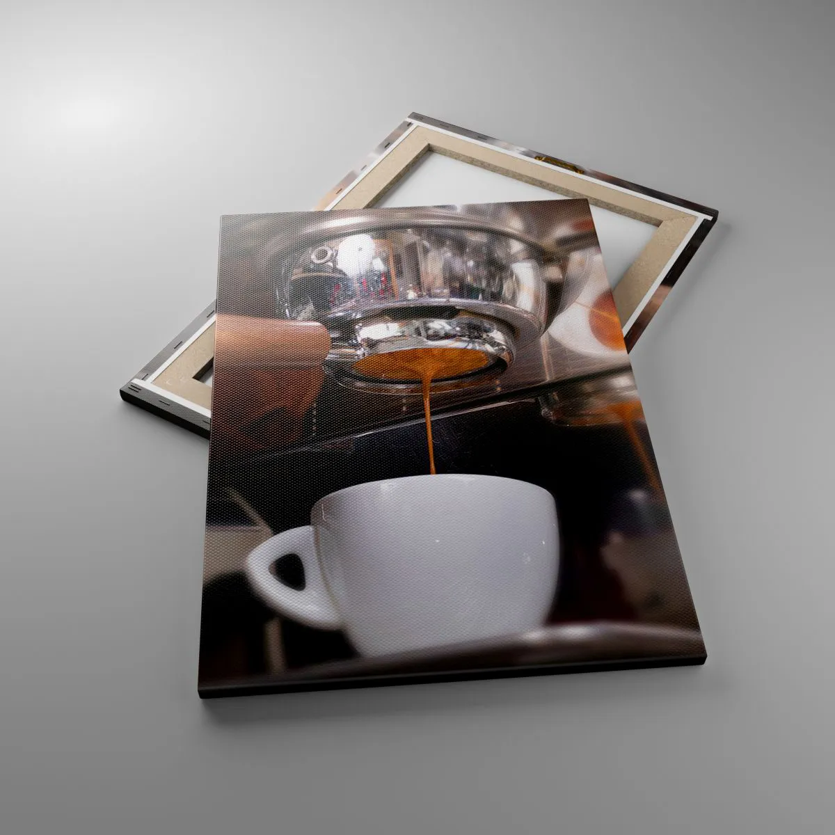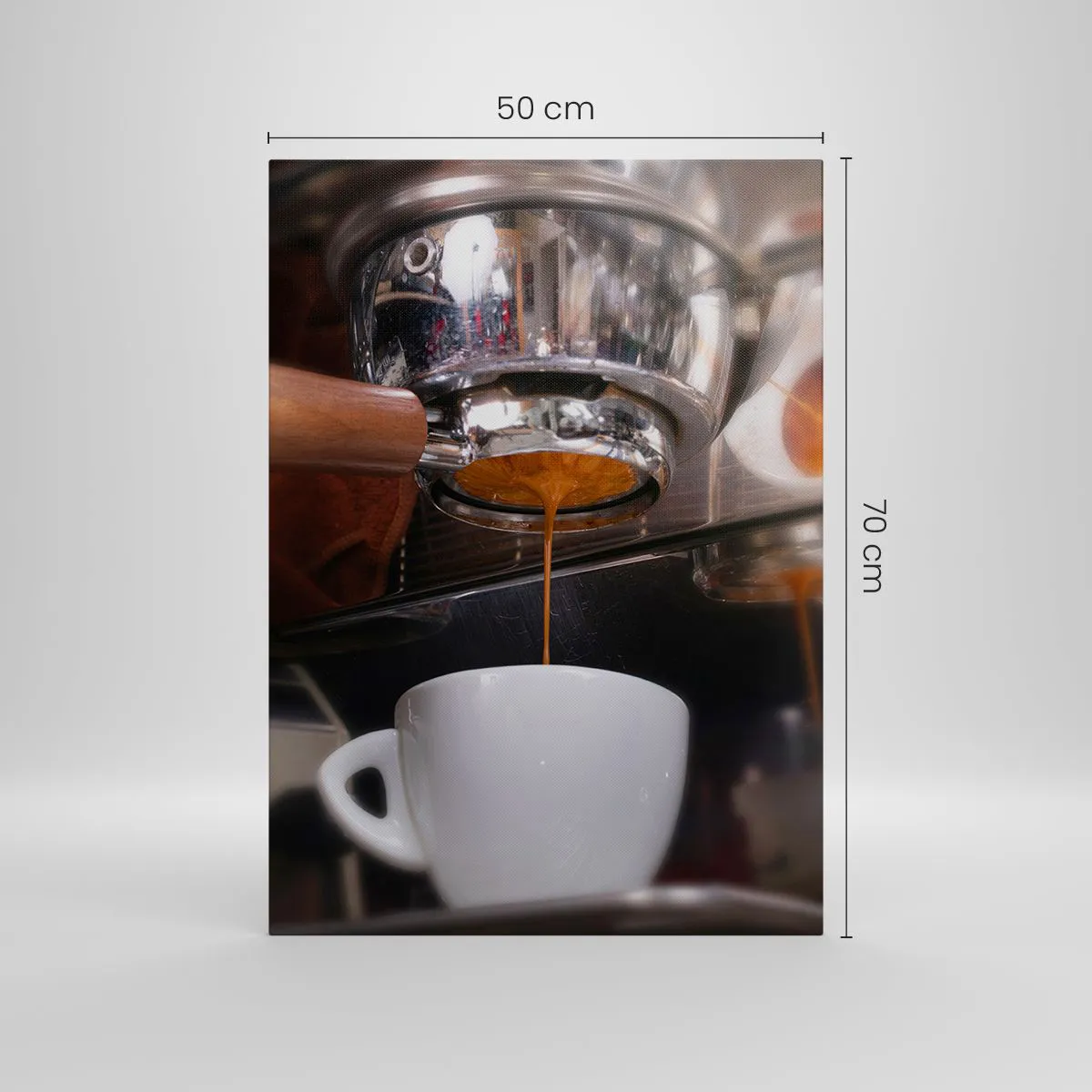 Bild auf Leinwand - Leinwandbild - Nahaufnahme einer Kaffeemaschine, die einen frischen Espresso zubereitet - 50x70cm - Gute Zeit des Tages - Moderne Wanddekoration für Wohnzimmer und Schlafzimmer ARTTOR