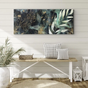 Die Leinwand wird über den Rahmen gespannt. Die Seiten und Kanten werden gedruckt, um das Bild fortzusetzen. Das Bild ist fertig zum Aufhängen an der Wand. Jedes Produkt hat einen am Rahmen befestigten Anhänger und ein Montageset (Schraube + Stift).