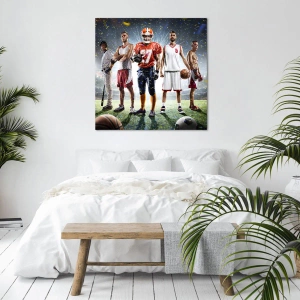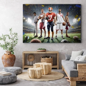 Bild auf Leinwand - Leinwandbild - Eine dynamische Szene von Athleten verschiedener Disziplinen im Stadion unter dem Scheinwerferlicht - 120x80cm - Feldgladiatoren - Moderne Wanddekoration für Wohnzimmer und Schlafzimmer ARTTOR
