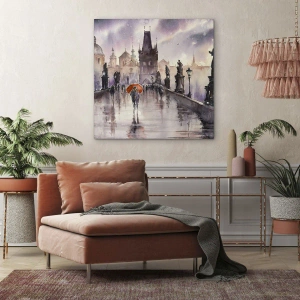 Die Komposition des Gemäldes kombiniert sanfte Farben und zarte Reflexionen, die perfekt in anspruchsvolle Innenräume passen. Das Gemälde strahlt Frieden aus und regt zum Nachdenken über die zeitlose Schönheit von Städten und menschlichen Beziehungen an.