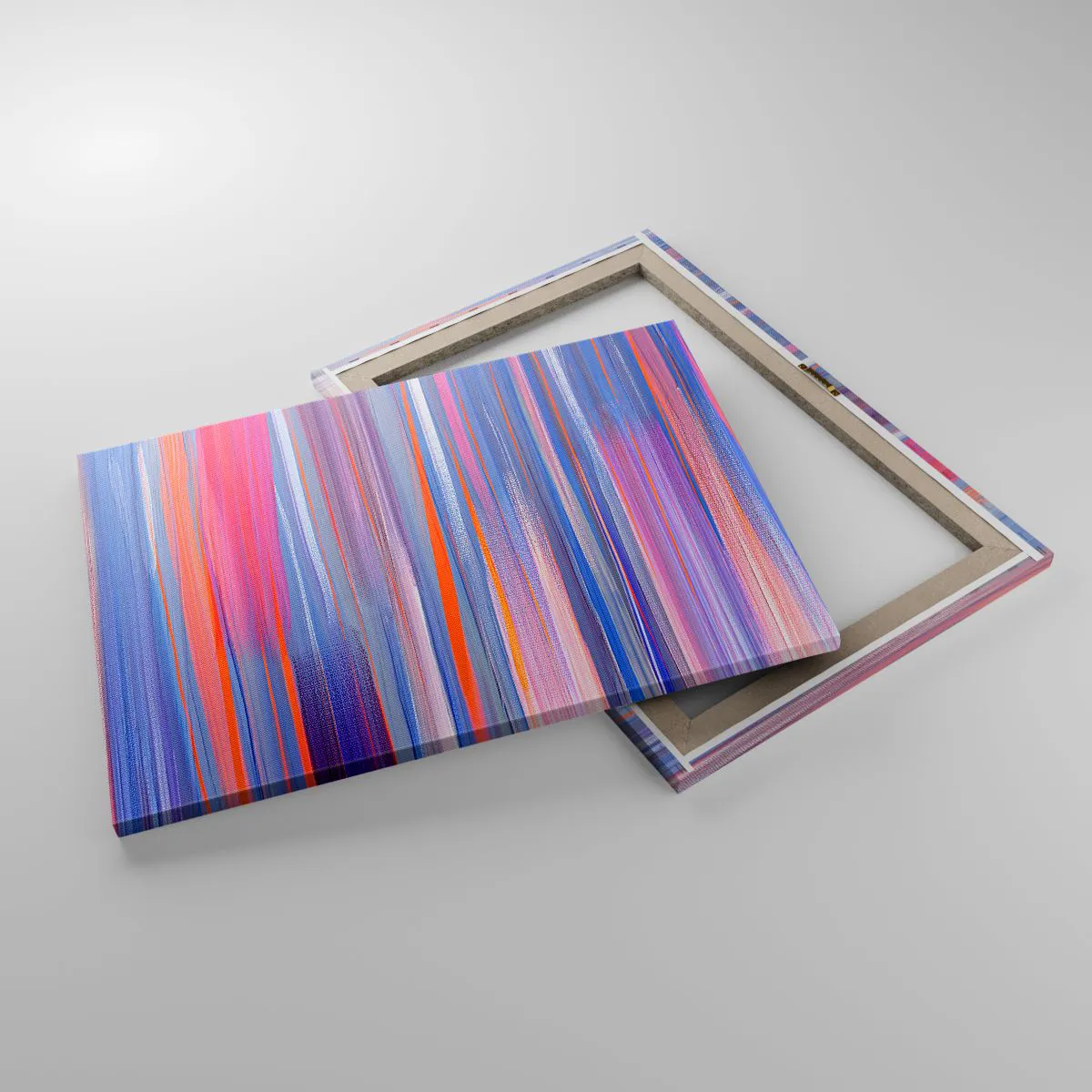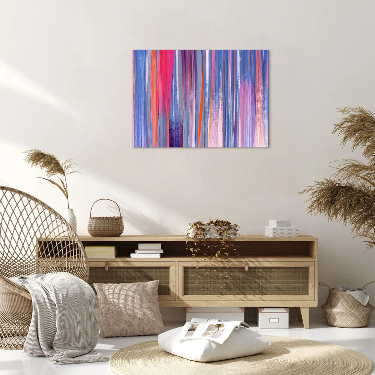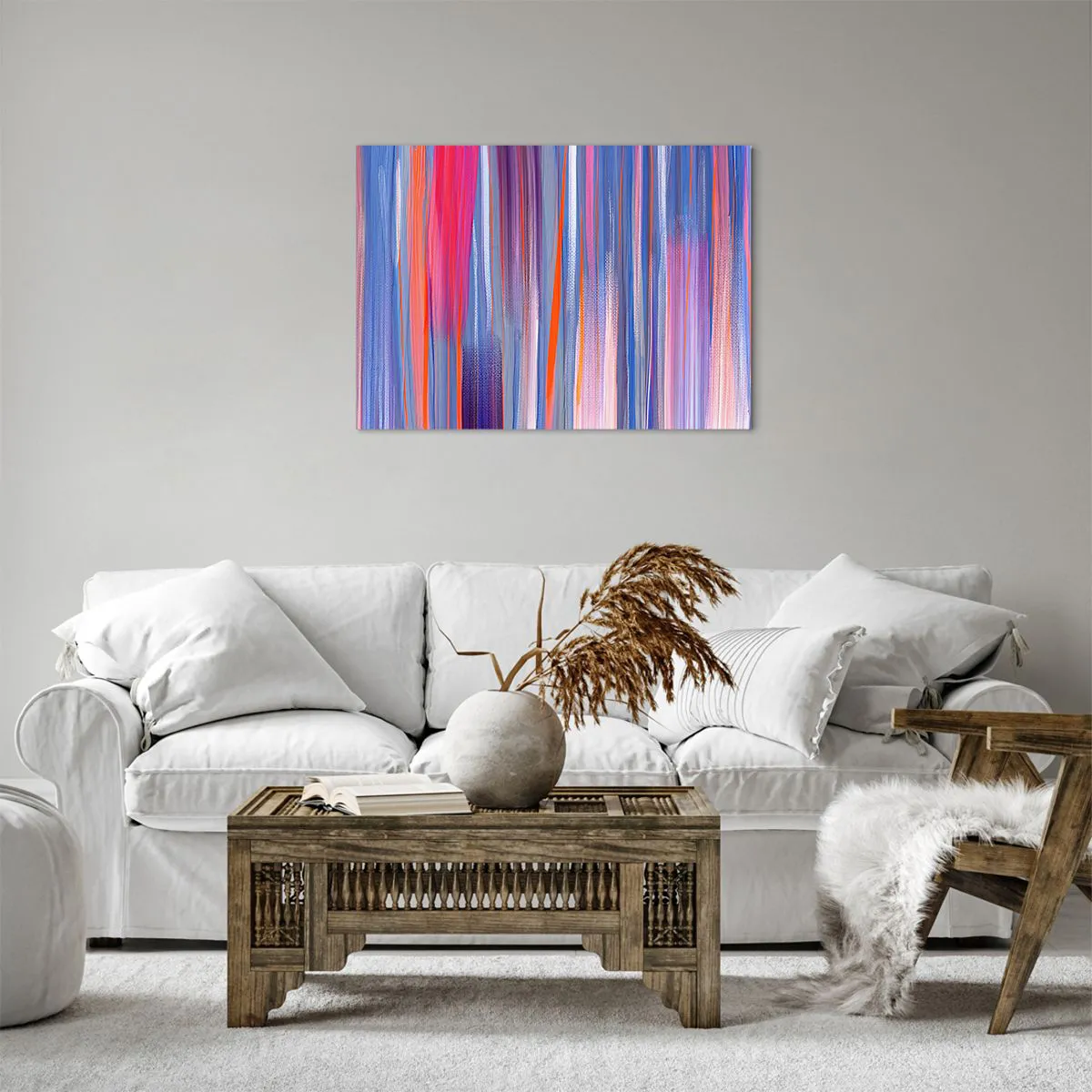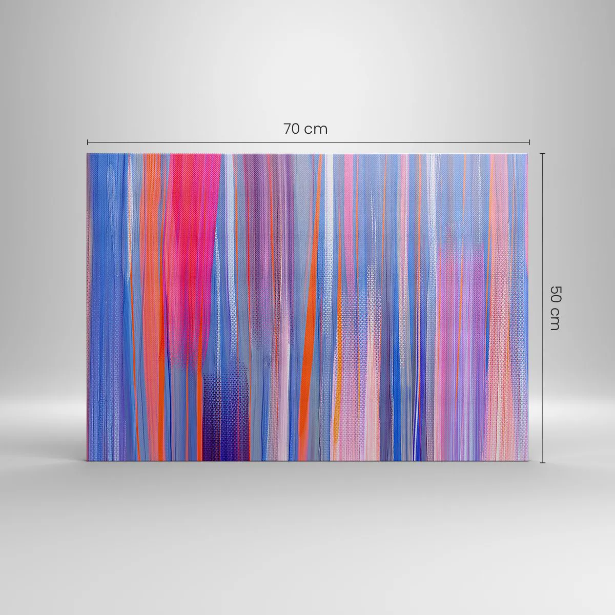 Bild auf Leinwand - Leinwandbild - Abstrakte vertikale Linien in Blau- und Rosatönen - 70x50cm - Aufstieg zum Regenbogen - Moderne Wanddekoration für Wohnzimmer und Schlafzimmer ARTTOR