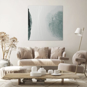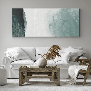 Bild auf Leinwand - Leinwandbild - Eine zarte abstrakte Komposition in Grüntönen mit subtilen Formen auf hellem Hintergrund. - 50x70cm - Begegnung mit Nebel - Moderne Wanddekoration für Wohnzimmer und Schlafzimmer ARTTOR