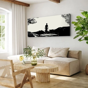 Die Leinwand wird über den Rahmen gespannt. Die Seiten und Kanten werden gedruckt, um das Bild fortzusetzen. Das Bild ist fertig zum Aufhängen an der Wand. Jedes Produkt hat einen am Rahmen befestigten Anhänger und ein Montageset (Schraube + Stift).