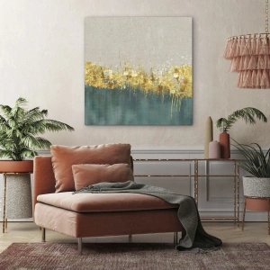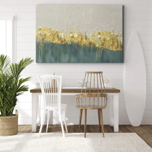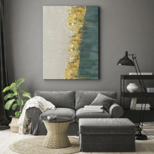 Bild auf Leinwand - Leinwandbild - Goldene Akzente auf grün-beigem Untergrund - 80x120cm - Goldener Rand - Moderne Wanddekoration für Wohnzimmer und Schlafzimmer ARTTOR