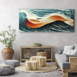 Bild auf Leinwand - Leinwandbild - Dynamische Meereswellen mit abstraktem Band - 70x100cm - Traum eines Surfers - Moderne Wanddekoration für Wohnzimmer und Schlafzimmer ARTTOR