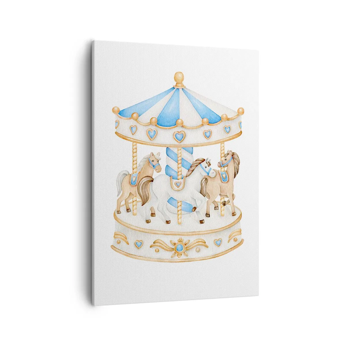Bild auf Leinwand - Leinwandbild - Ein Karussell in Pastellfarben auf weißem Hintergrund - 50x70cm - Süße Kindheit - Moderne Wanddekoration für Wohnzimmer und Schlafzimmer ARTTOR