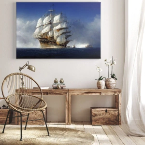 Bild auf Leinwand - Leinwandbild - Ein Segelschiff auf offener See unter blauem Himmel - 50x70cm - Der große Ruhm! - Moderne Wanddekoration für Wohnzimmer und Schlafzimmer ARTTOR