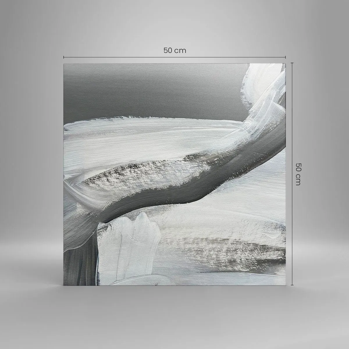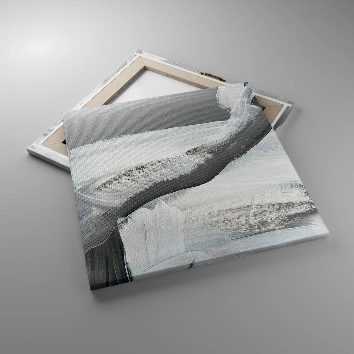 Die Leinwand wird über den Rahmen gespannt. Die Seiten und Kanten werden gedruckt, um das Bild fortzusetzen. Das Bild ist fertig zum Aufhängen an der Wand. Jedes Produkt hat einen am Rahmen befestigten Anhänger und ein Montageset (Schraube + Stift).