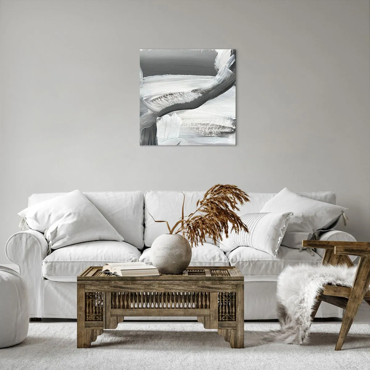 Wir verwenden ökologische, geruchslose und langlebige Tinten mit tiefer Farbsättigung. Durch moderne Drucktechnik wird der Druck präzise platziert, wobei die sichtbare Struktur der Leinwand erhalten bleibt