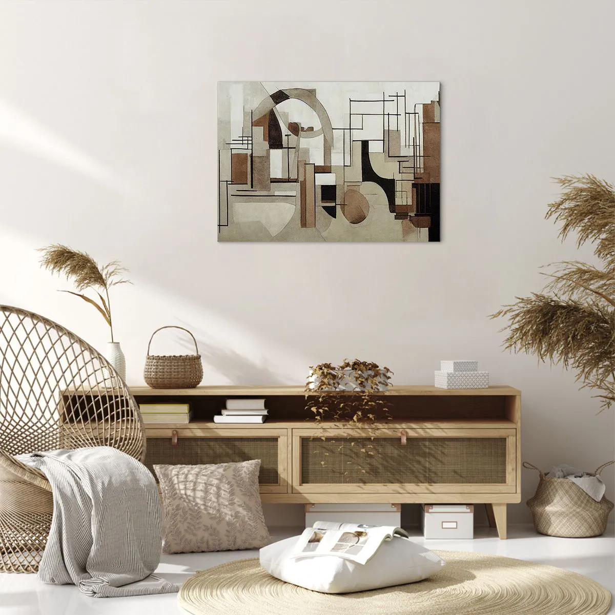 - Diese architektonische Abstraktion in Beige- und Brauntönen ist eine stilvolle Dekoration, die Harmonie und Eleganz in moderne Innenräume bringt. Sie passt perfekt in ein Wohnzimmer oder Schlafzimmer und schafft ein einzigartiges Designelement.