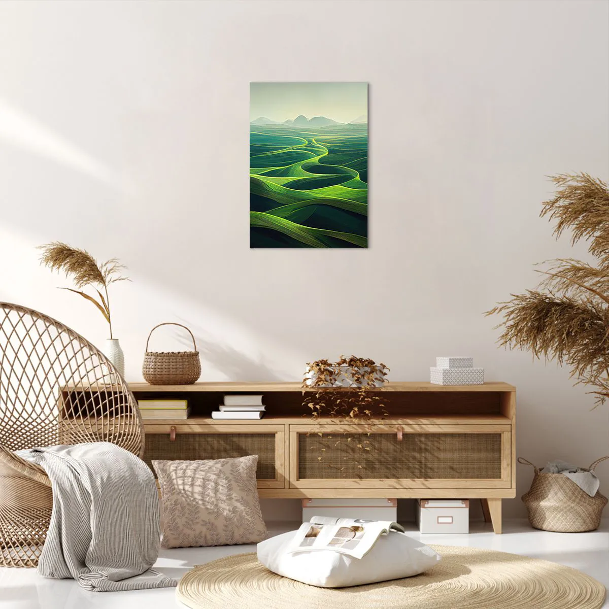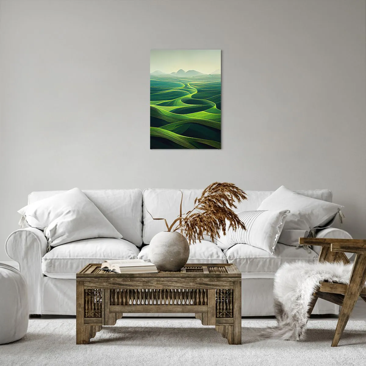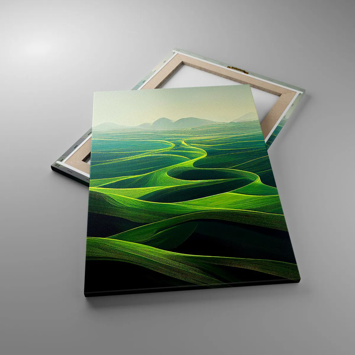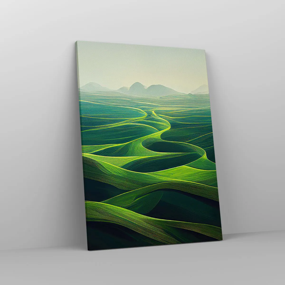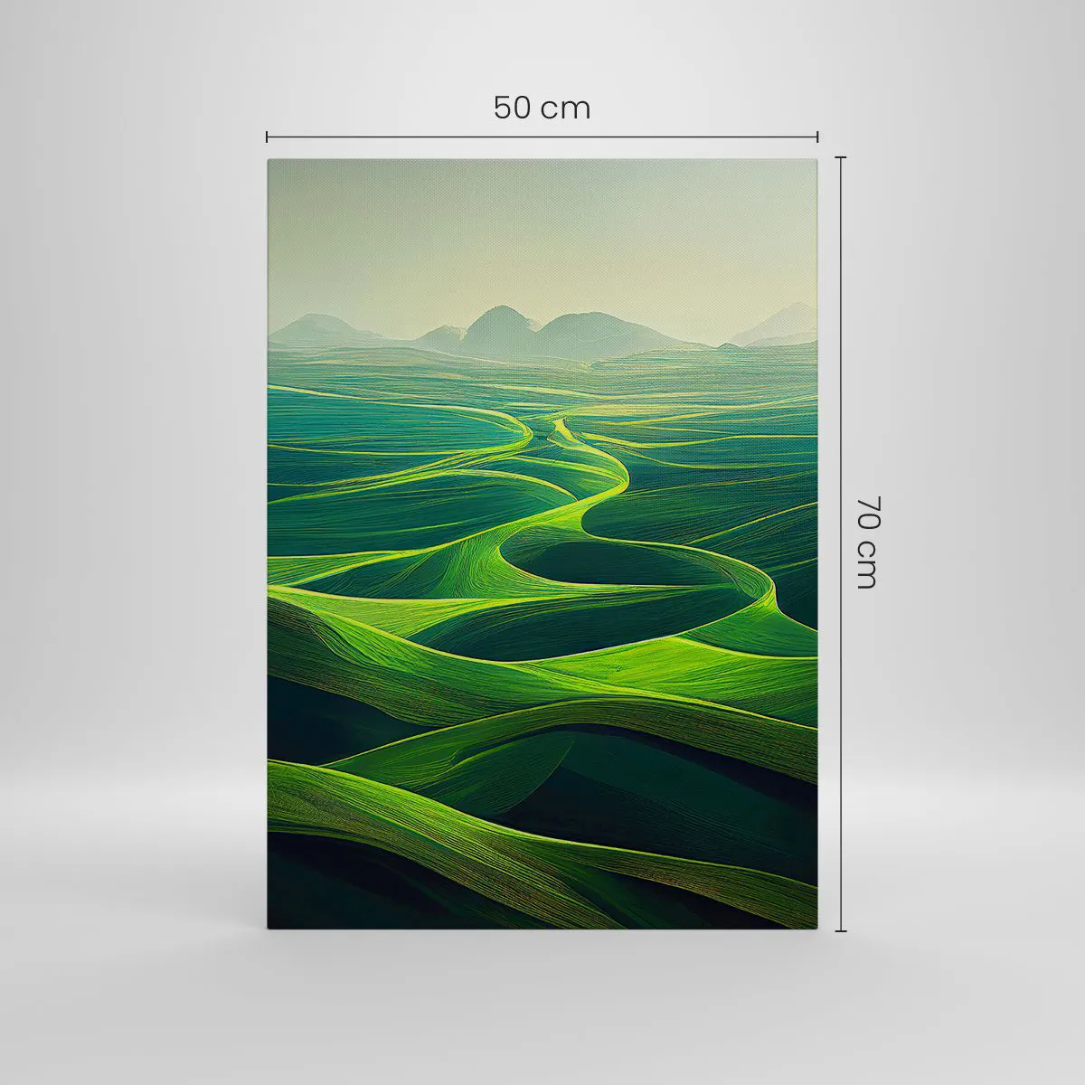 Bild auf Leinwand - Leinwandbild - Grüne Hügel mit sanften Pfaden - 50x70cm - In den grünen Tälern - Moderne Wanddekoration für Wohnzimmer und Schlafzimmer ARTTOR