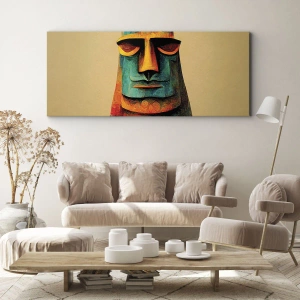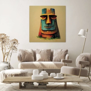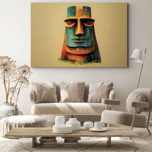 Bild auf Leinwand - Leinwandbild - Bunte Statue von der Osterinsel - 80x120cm - Statuenhaft und sympathisch - Moderne Wanddekoration für Wohnzimmer und Schlafzimmer ARTTOR