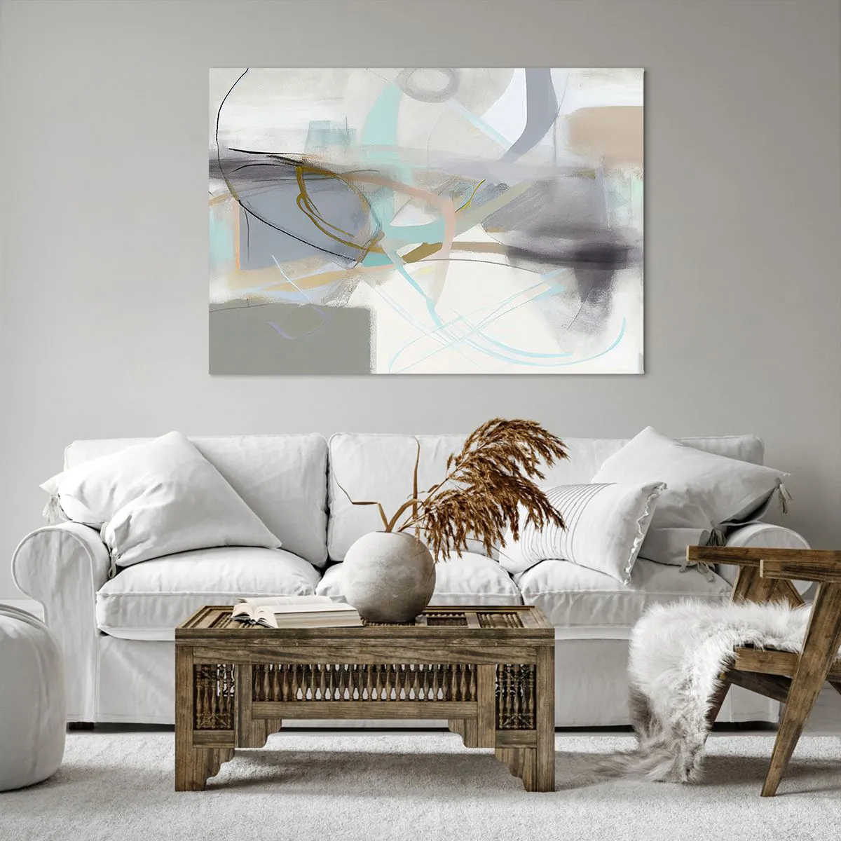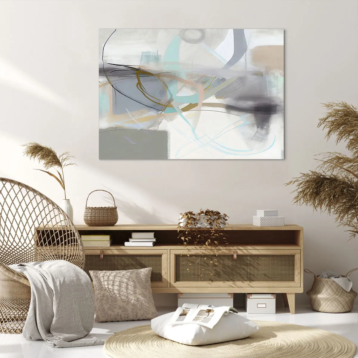 Bild auf Leinwand - Leinwandbild - Pastellabstraktion mit zarten Linien - 100x70cm - Neblige Abstraktion - Moderne Wanddekoration für Wohnzimmer und Schlafzimmer ARTTOR