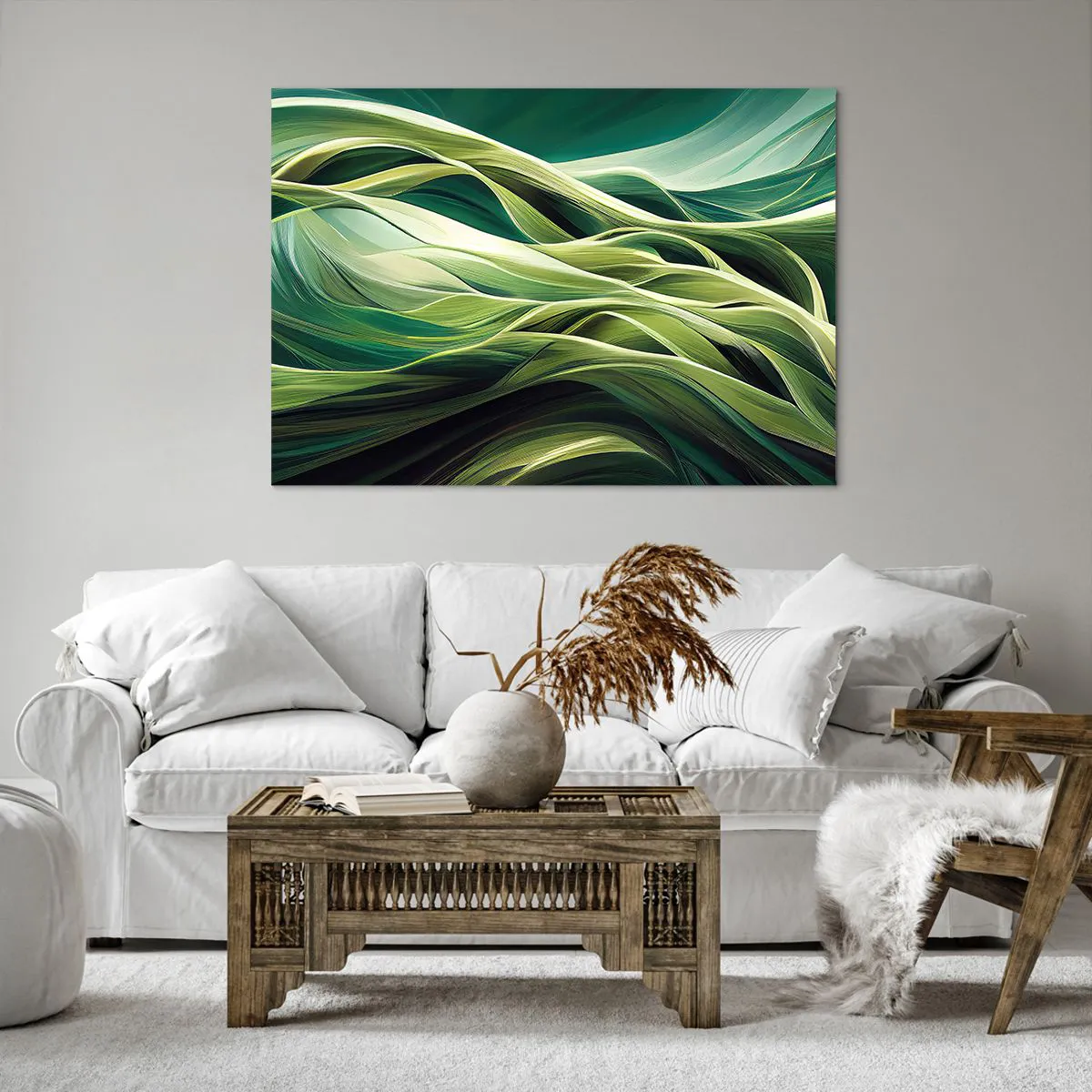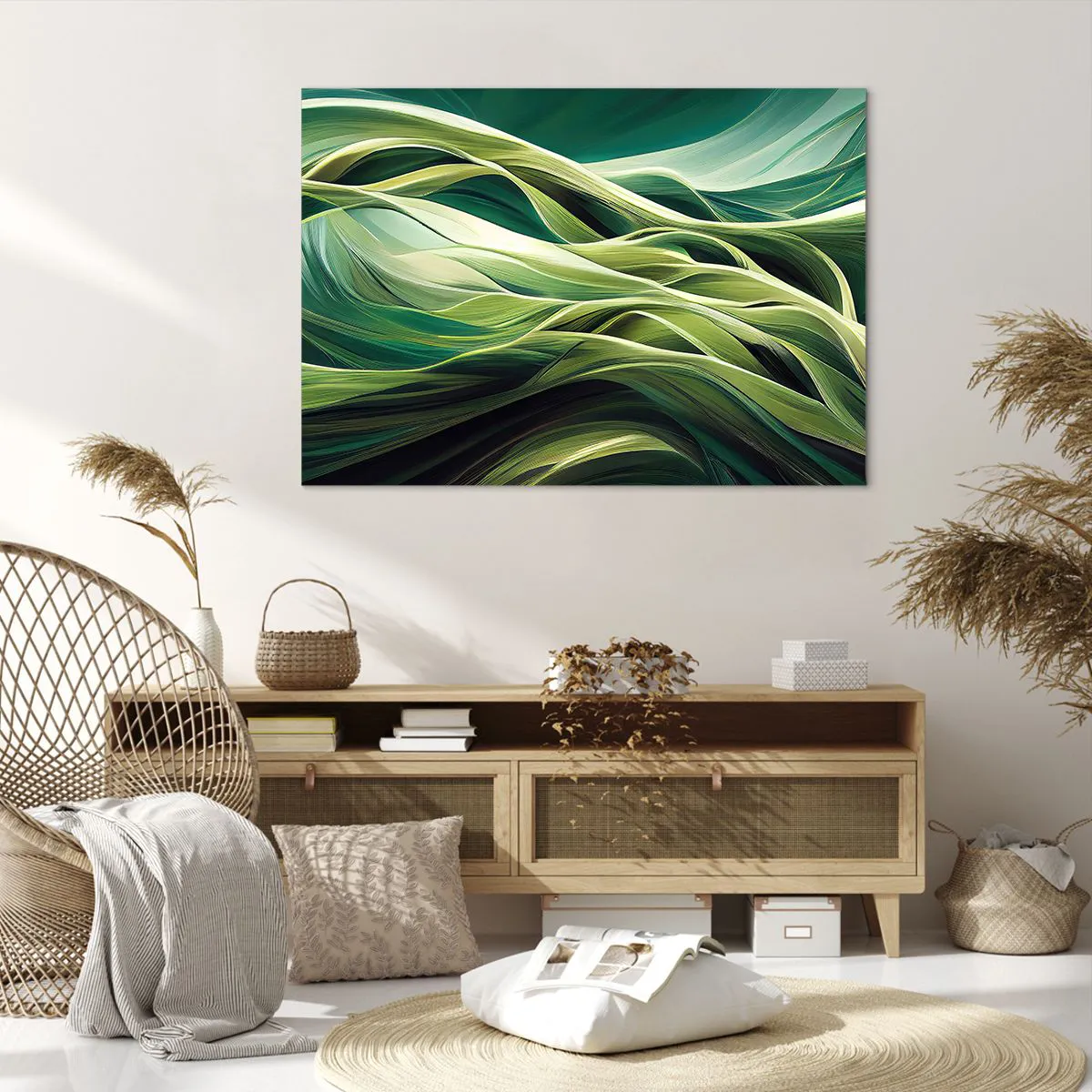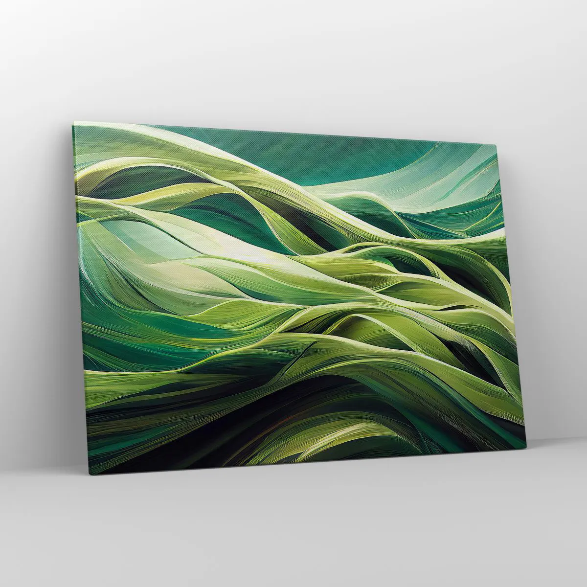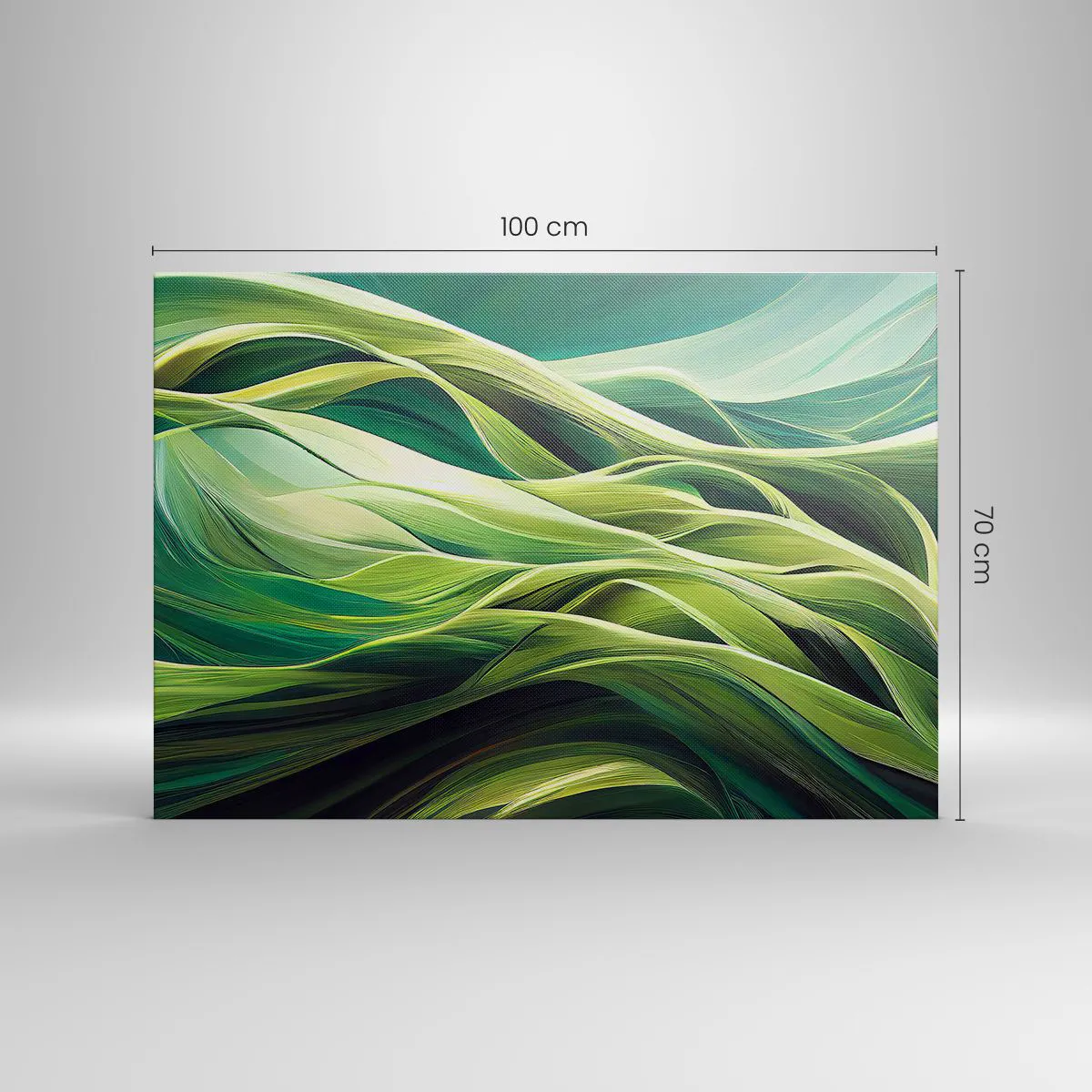 Bild auf Leinwand - Leinwandbild - Dynamische Linien in Grüntönen - 100x70cm - Abstraktes grünes Spiel - Moderne Wanddekoration für Wohnzimmer und Schlafzimmer ARTTOR