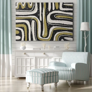 Wandbild - Komposition: Wege und Gassen - Abstraktes Muster in Schwarz, Weiß und Gold