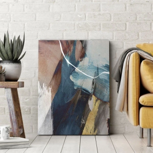 Bild auf Leinwand - Leinwandbild - Abstrakte Pinselstriche in Blau- und Goldtönen - 120x50cm - Großzügig und mit Energie - Moderne Wanddekoration für Wohnzimmer und Schlafzimmer ARTTOR