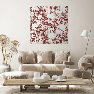 - Eine künstlerische Komposition mit roten Blumen auf dezentem weißem Hintergrund. Das minimalistische Design passt perfekt in moderne Innenräume und verleiht ihnen Eleganz und Leichtigkeit. Perfekt für Wohn- oder Schlafzimmer.