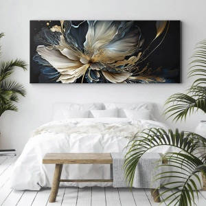 Bild auf Leinwand - Leinwandbild - Eine Blume in Gold- und Marineblautönen auf schwarzem Hintergrund - 120x80cm - Märchenhafte Farnblume - Moderne Wanddekoration für Wohnzimmer und Schlafzimmer ARTTOR