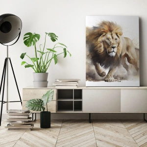- Das Gemälde zeigt ein dynamisches Porträt eines Löwen in natürlichen Farben und unterstreicht die Stärke und Majestät des Königs der Tiere. Perfekt für Innenräume mit modernem oder klassischem Flair.