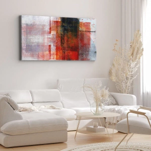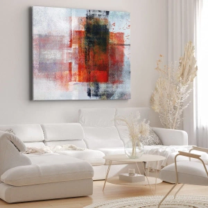 Bild auf Leinwand - Leinwandbild - Abstrakte geometrische Komposition mit roten und orangefarbenen Akzenten - 70x100cm - Komposition leuchtet - Moderne Wanddekoration für Wohnzimmer und Schlafzimmer ARTTOR