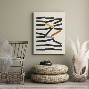 Die Leinwand wird über den Rahmen gespannt. Die Seiten und Kanten werden gedruckt, um das Bild fortzusetzen. Das Bild ist fertig zum Aufhängen an der Wand. Jedes Produkt hat einen am Rahmen befestigten Anhänger und ein Montageset (Schraube + Stift).