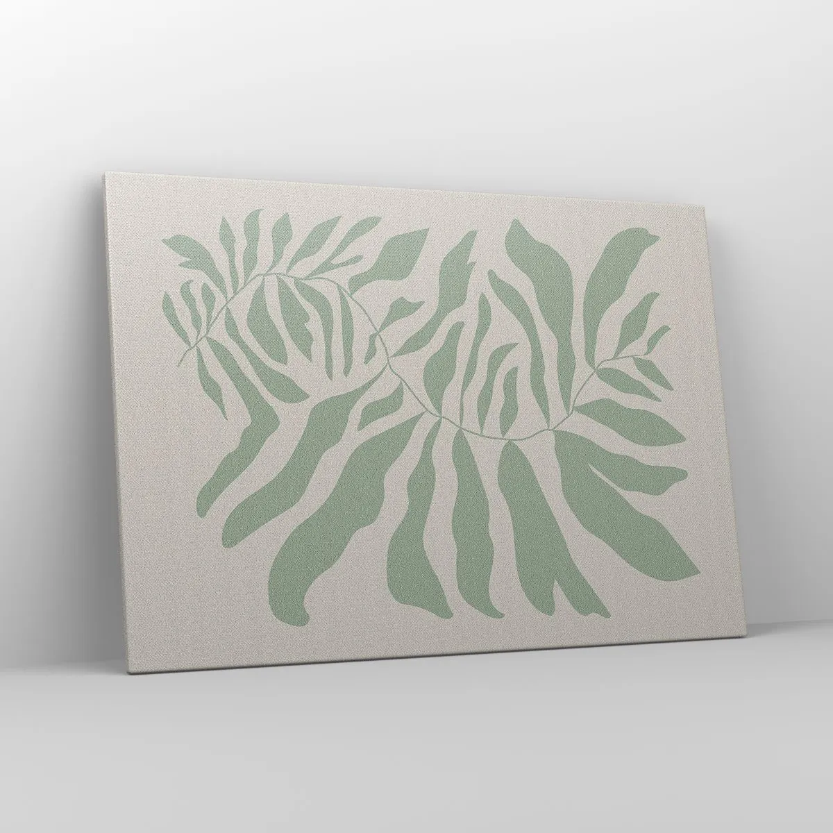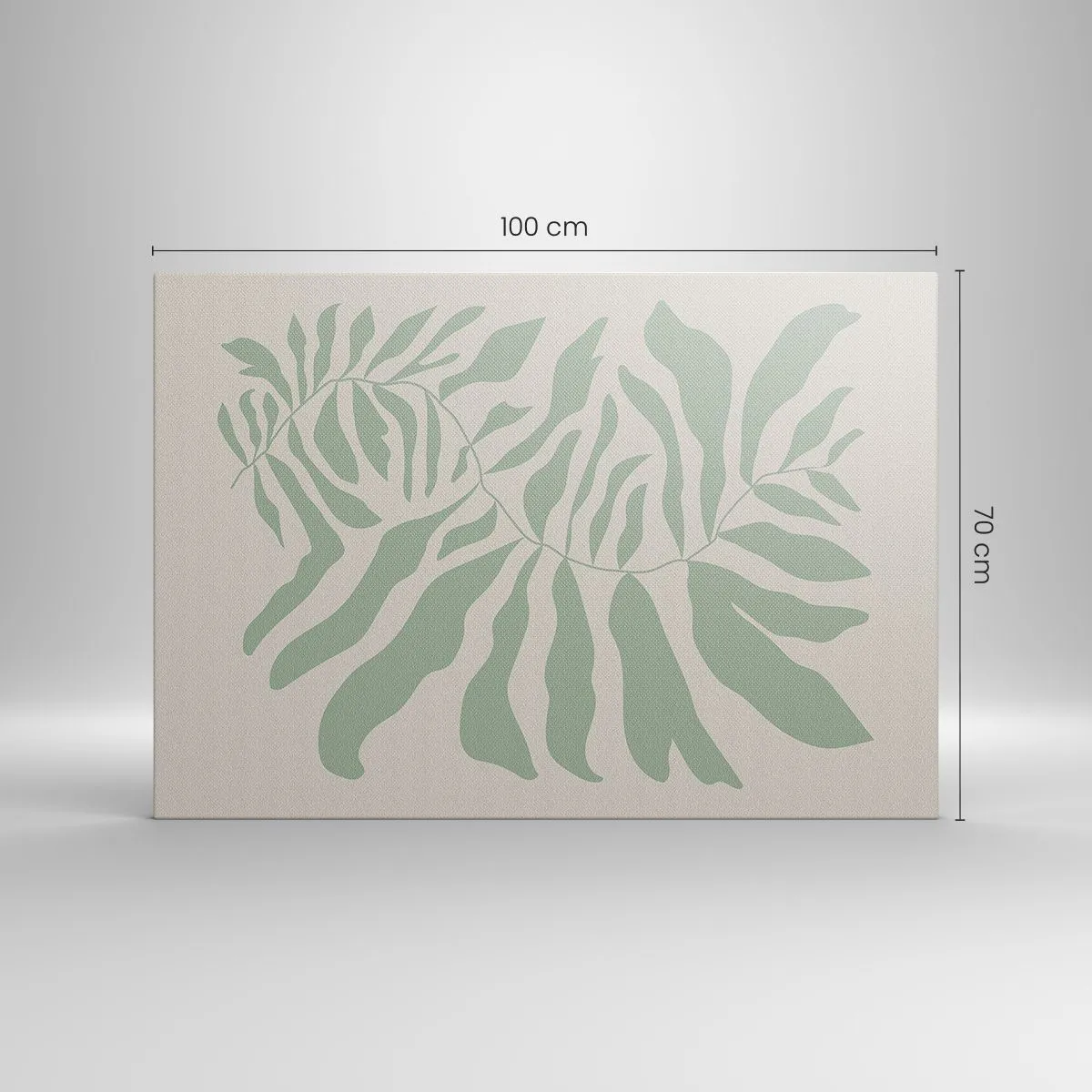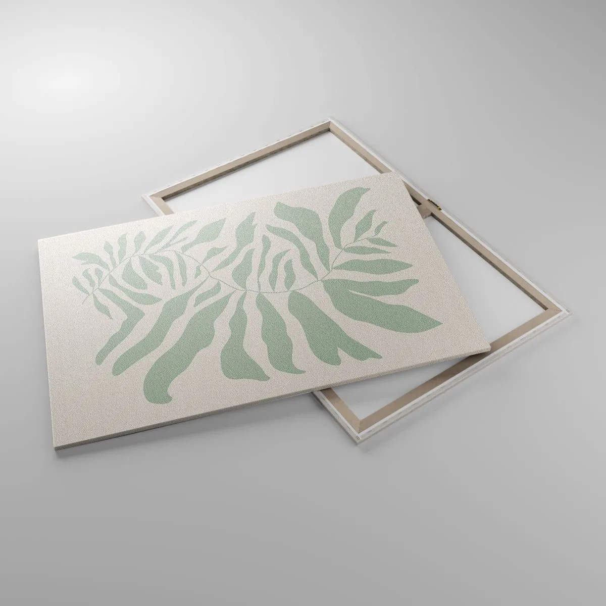 Bild auf Leinwand - Leinwandbild - Ein zartes Zweigmuster mit Blättern in einem Smaragdgrünton - 100x70cm - Smaragdzweig - Moderne Wanddekoration für Wohnzimmer und Schlafzimmer ARTTOR