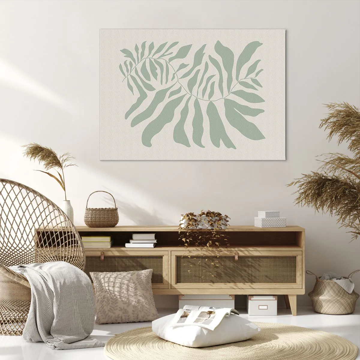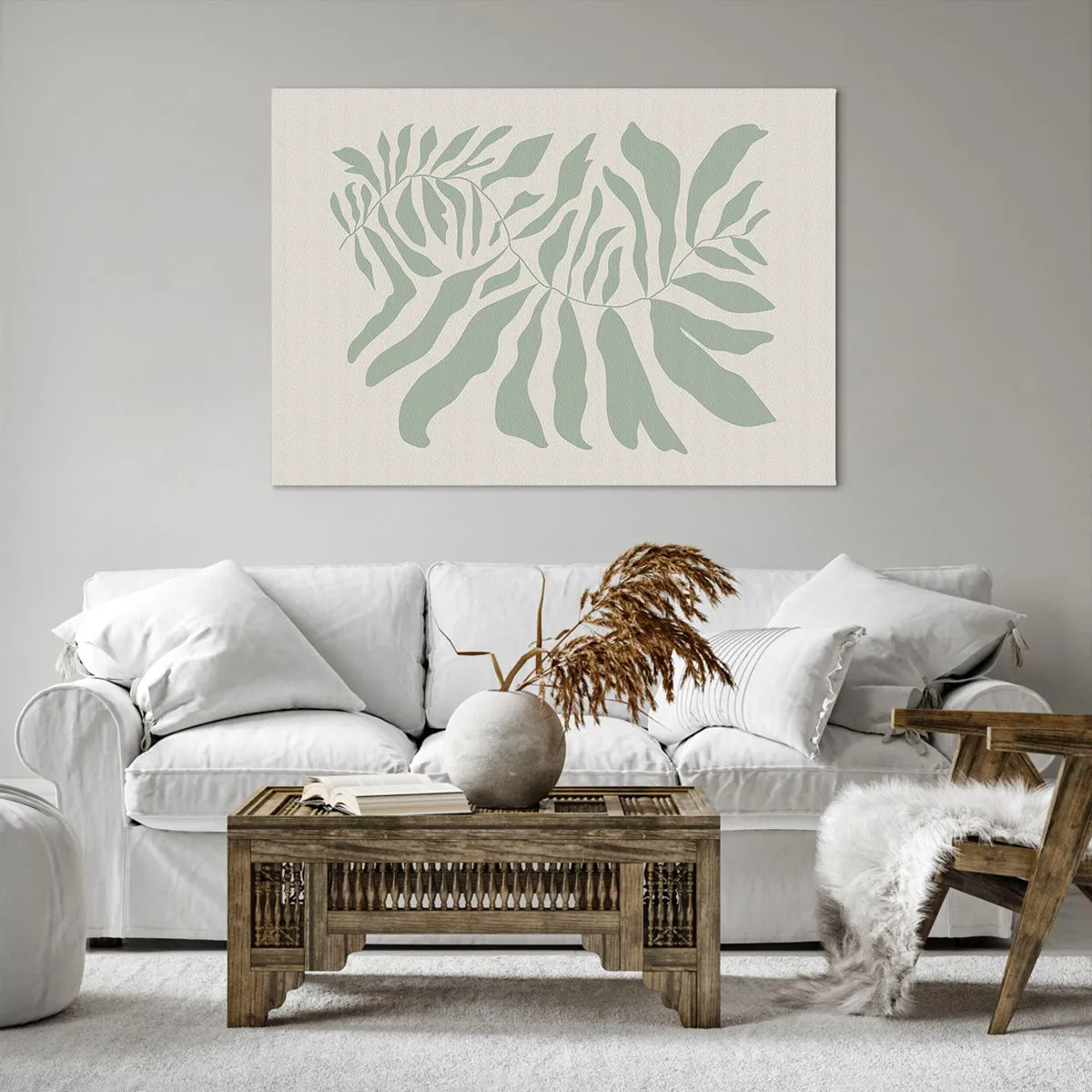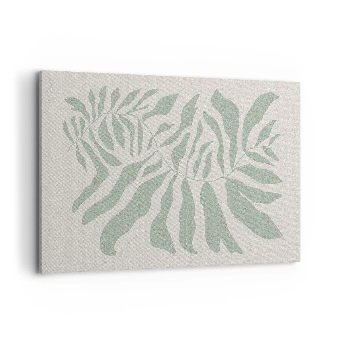 Bild auf Leinwand - Leinwandbild - Ein zartes Zweigmuster mit Blättern in einem Smaragdgrünton - 100x70cm - Smaragdzweig - Moderne Wanddekoration für Wohnzimmer und Schlafzimmer ARTTOR