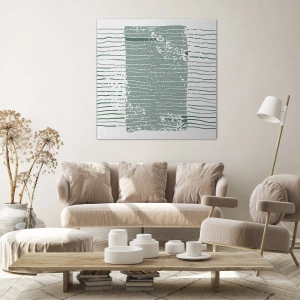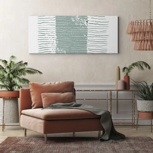 - Dieser Leinwanddruck zeigt ein geometrisches Muster in Meeresgrün- und Weißtönen. Er ist die perfekte Wahl für Innenräume, in denen Minimalismus und Harmonie im Vordergrund stehen.