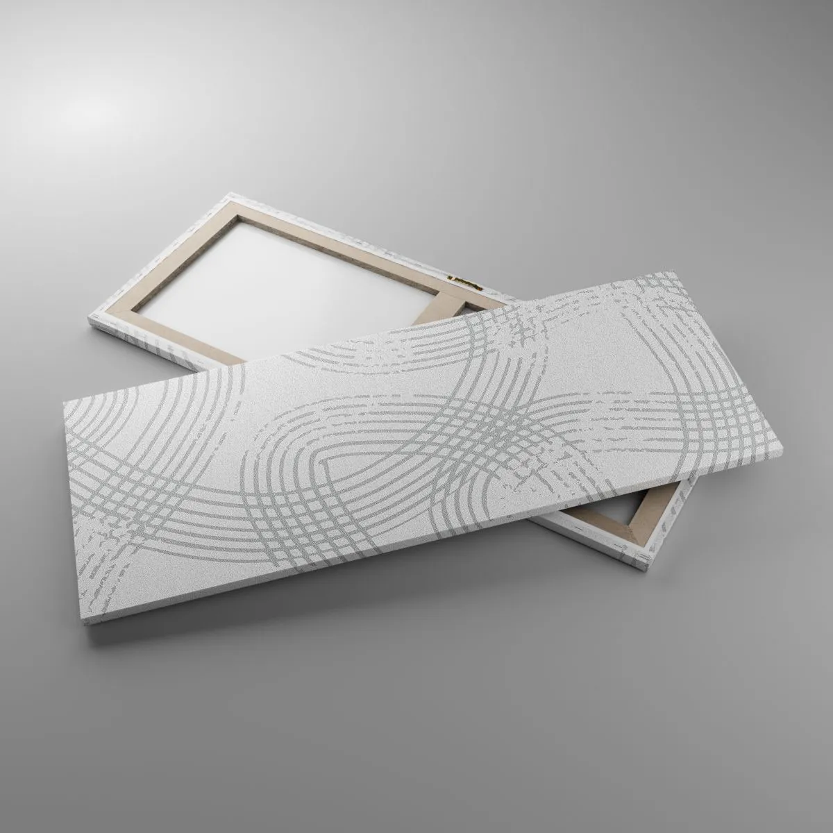 Die Leinwand wird über den Rahmen gespannt. Die Seiten und Kanten werden gedruckt, um das Bild fortzusetzen. Das Bild ist fertig zum Aufhängen an der Wand. Jedes Produkt hat einen am Rahmen befestigten Anhänger und ein Montageset (Schraube + Stift).