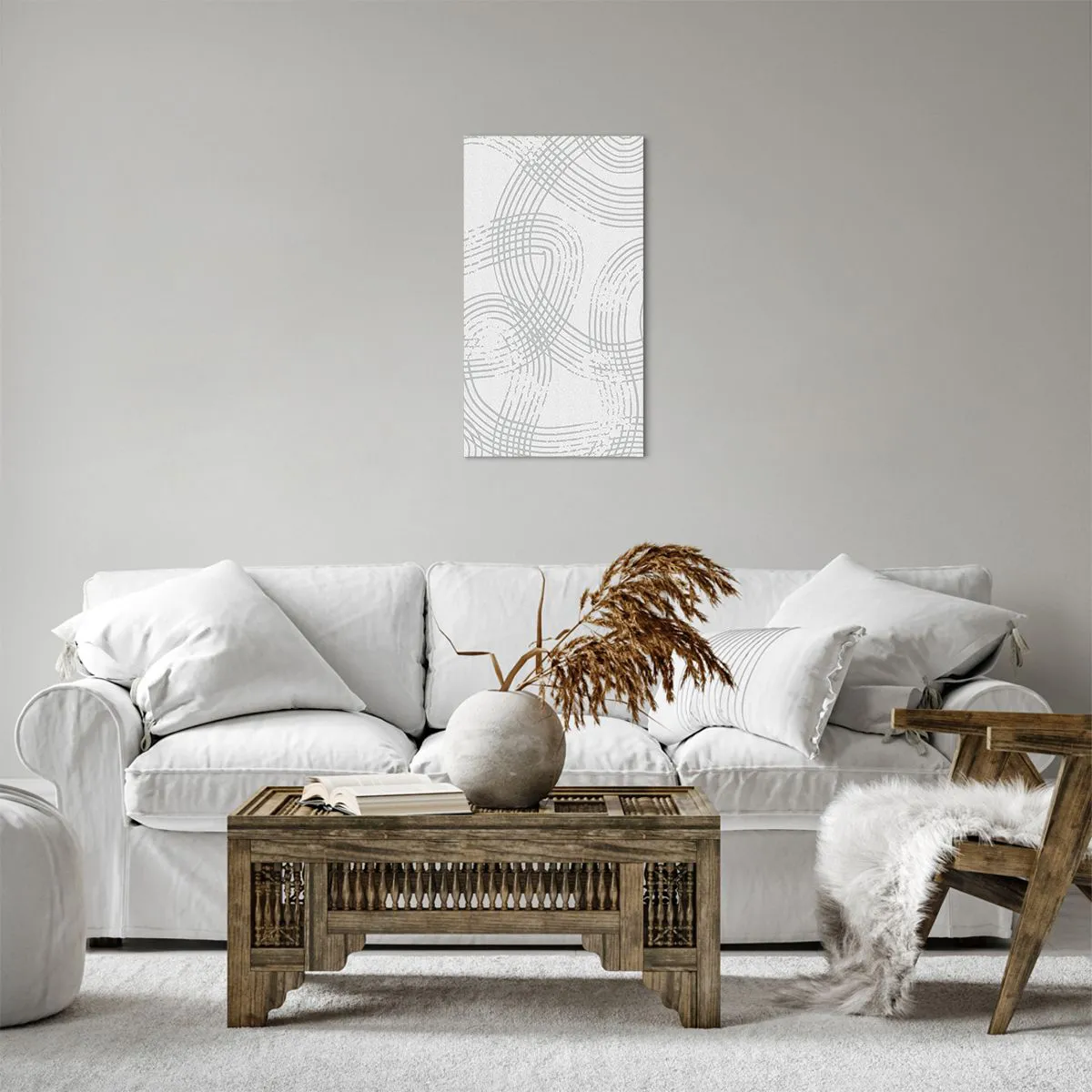 Die Leinwand wird über den Rahmen gespannt. Die Seiten und Kanten werden gedruckt, um das Bild fortzusetzen. Das Bild ist fertig zum Aufhängen an der Wand. Jedes Produkt hat einen am Rahmen befestigten Anhänger und ein Montageset (Schraube + Stift).
