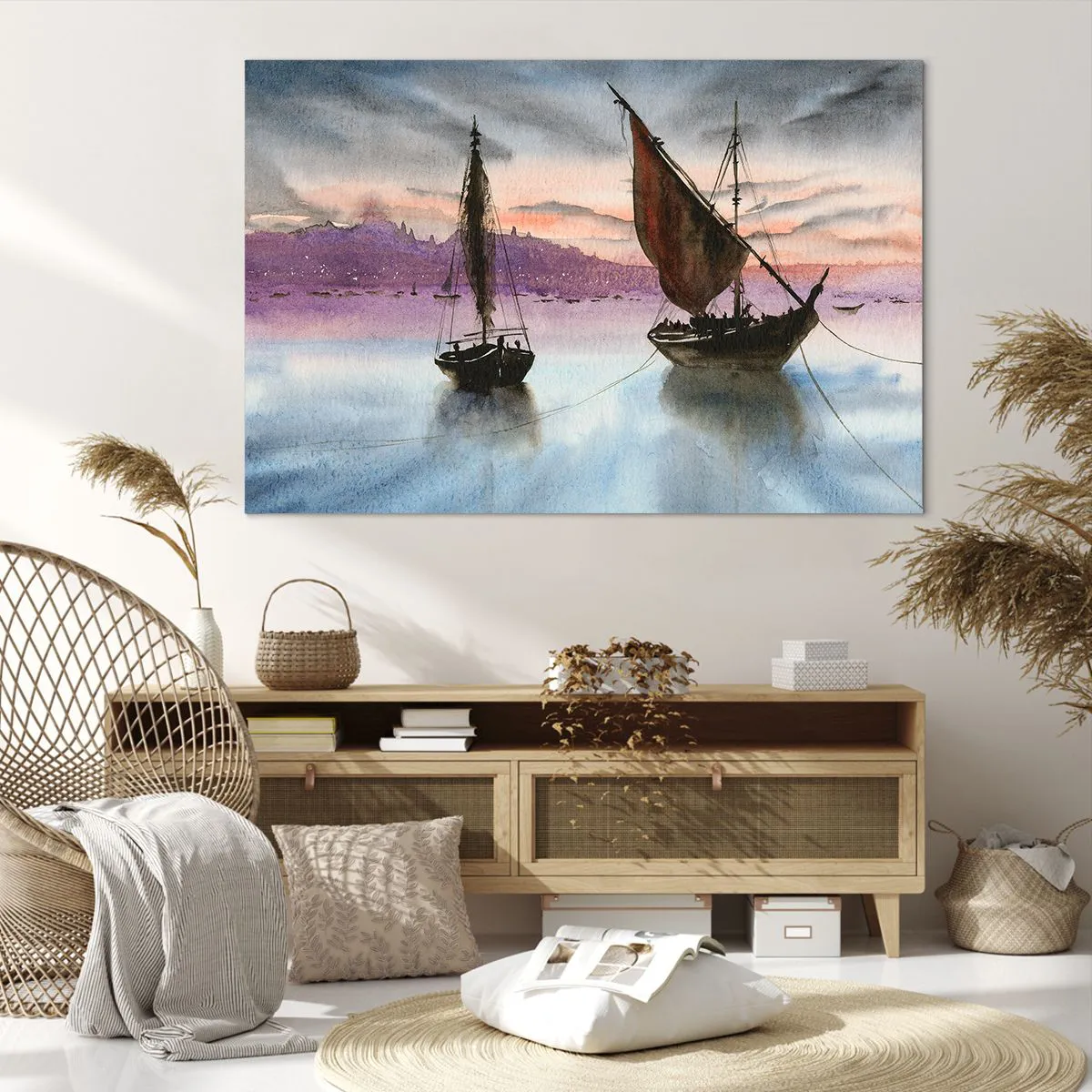 Wir verwenden ökologische, geruchslose und langlebige Tinten mit tiefer Farbsättigung. Durch moderne Drucktechnik wird der Druck präzise platziert, wobei die sichtbare Struktur der Leinwand erhalten bleibt