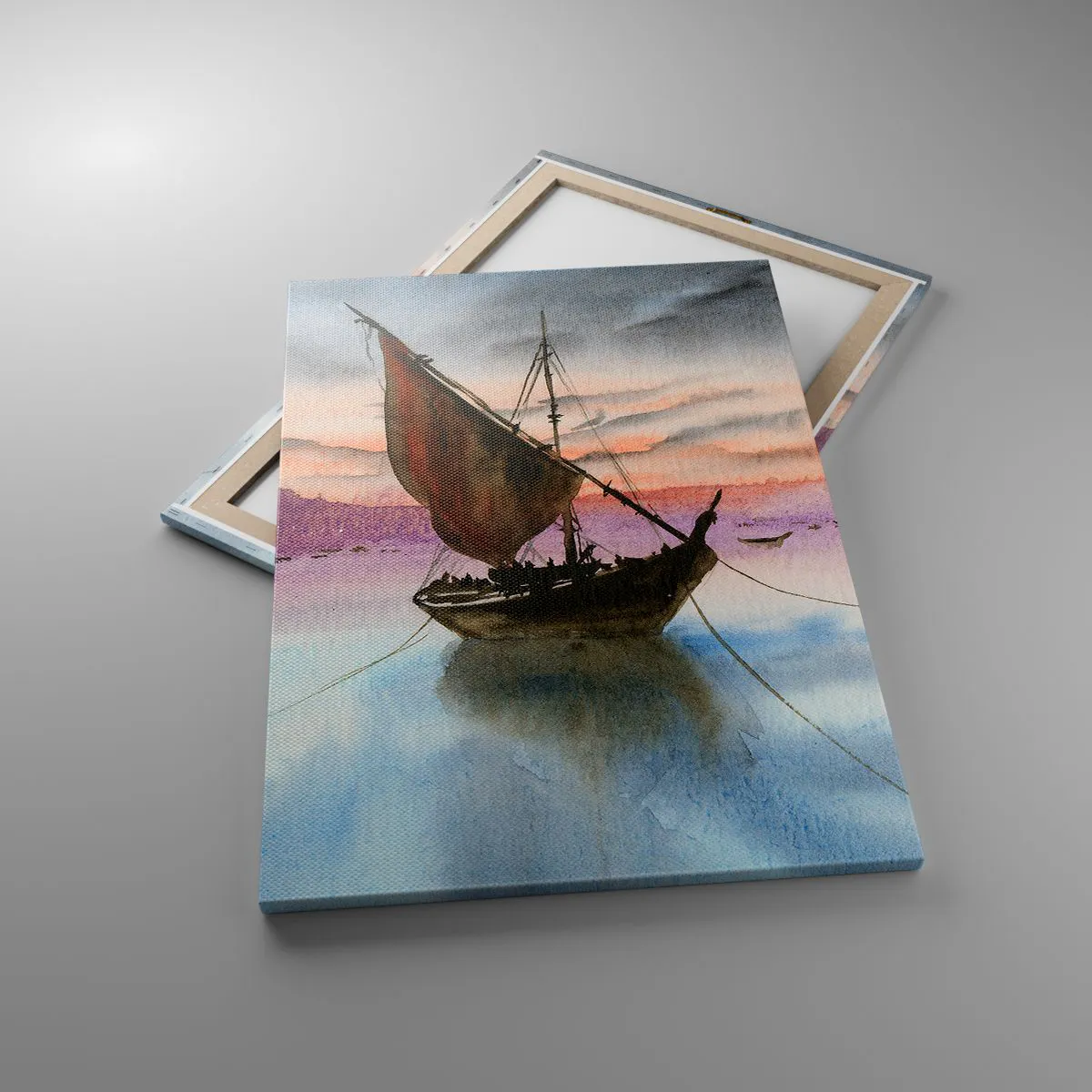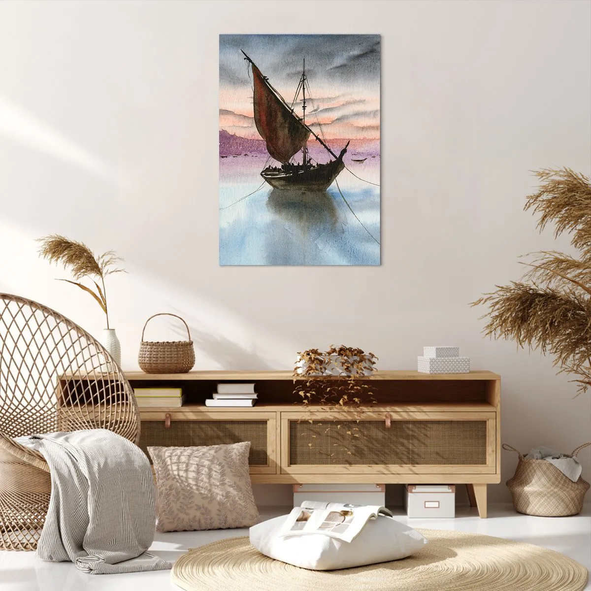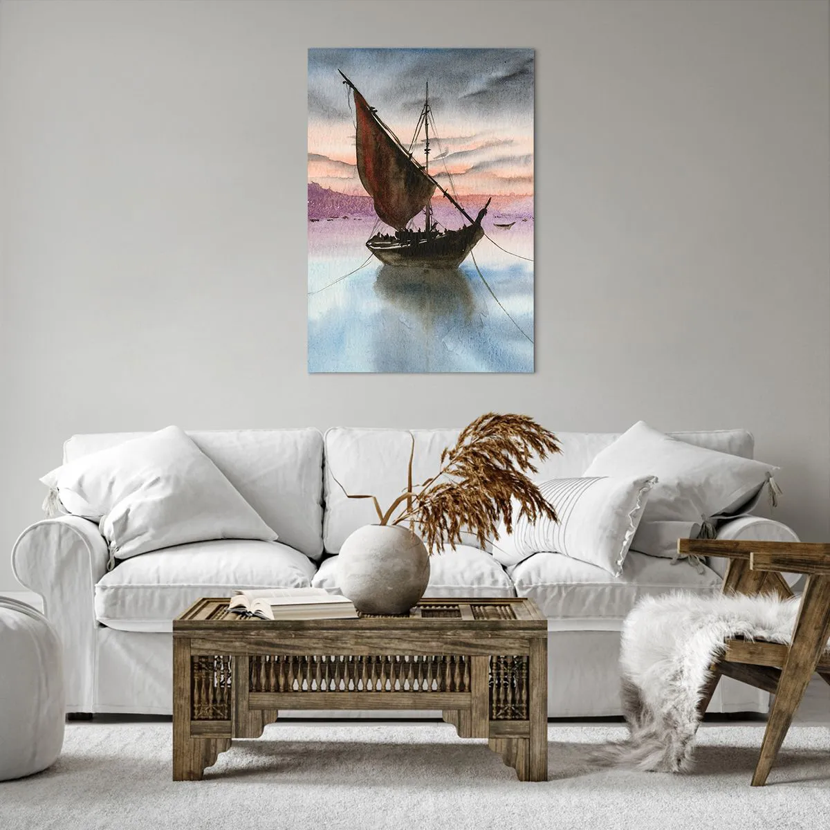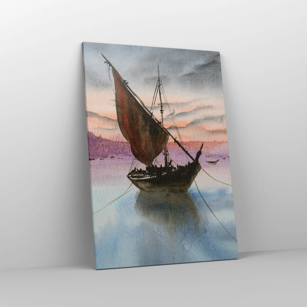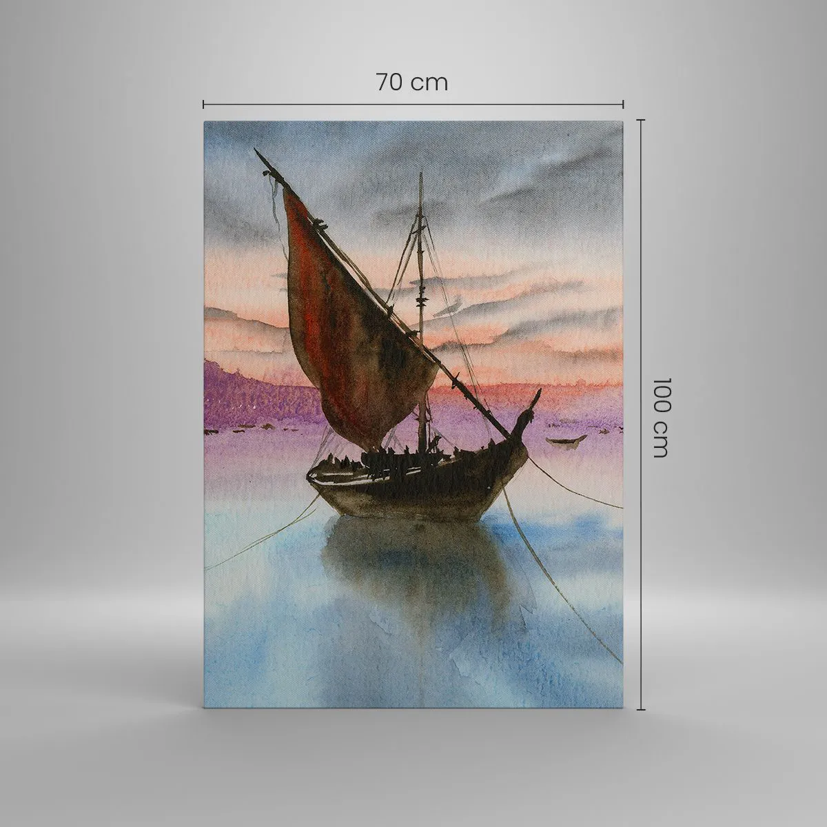 Bild auf Leinwand - Leinwandbild - Zwei Segelschiffe liegen in der Abenddämmerung auf ruhigem Wasser vor Anker - 70x100cm - Abend am Hafen - Moderne Wanddekoration für Wohnzimmer und Schlafzimmer ARTTOR