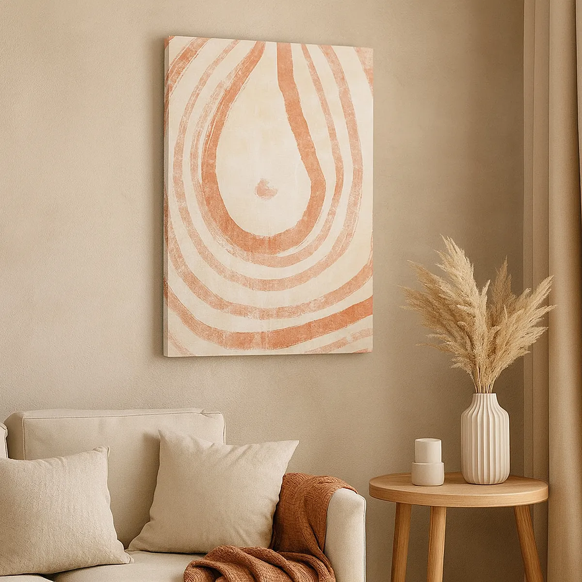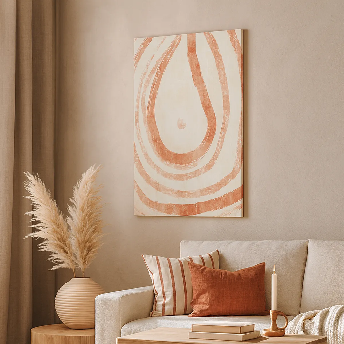 Bild auf Leinwand - Leinwandbild - Ein abstraktes Motiv aus konzentrischen Linien in Terrakotta-Tönen. - 80x120cm - Korallenkreise – Komposition - Moderne Wanddekoration für Wohnzimmer und Schlafzimmer ARTTOR