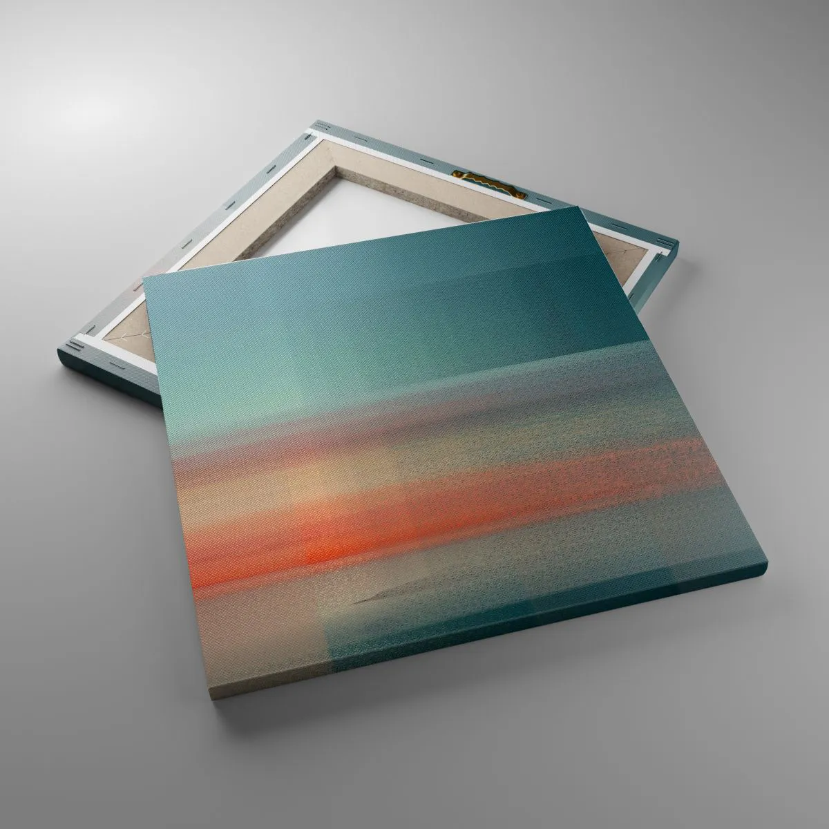 Die Leinwand wird über den Rahmen gespannt. Die Seiten und Kanten werden gedruckt, um das Bild fortzusetzen. Das Bild ist fertig zum Aufhängen an der Wand. Jedes Produkt hat einen am Rahmen befestigten Anhänger und ein Montageset (Schraube + Stift).