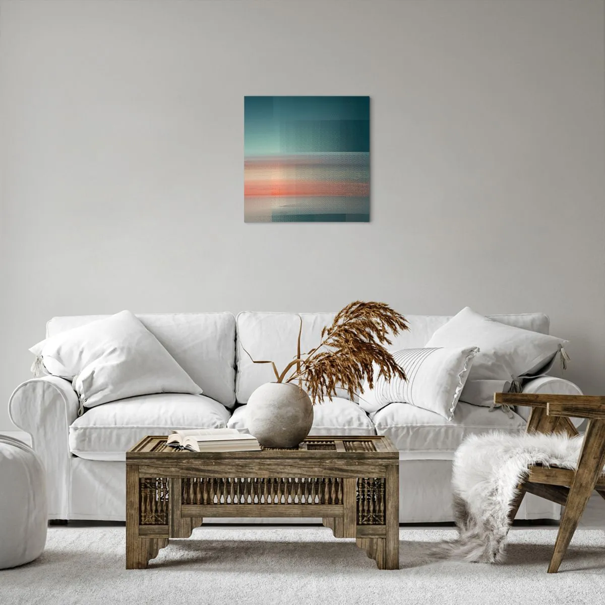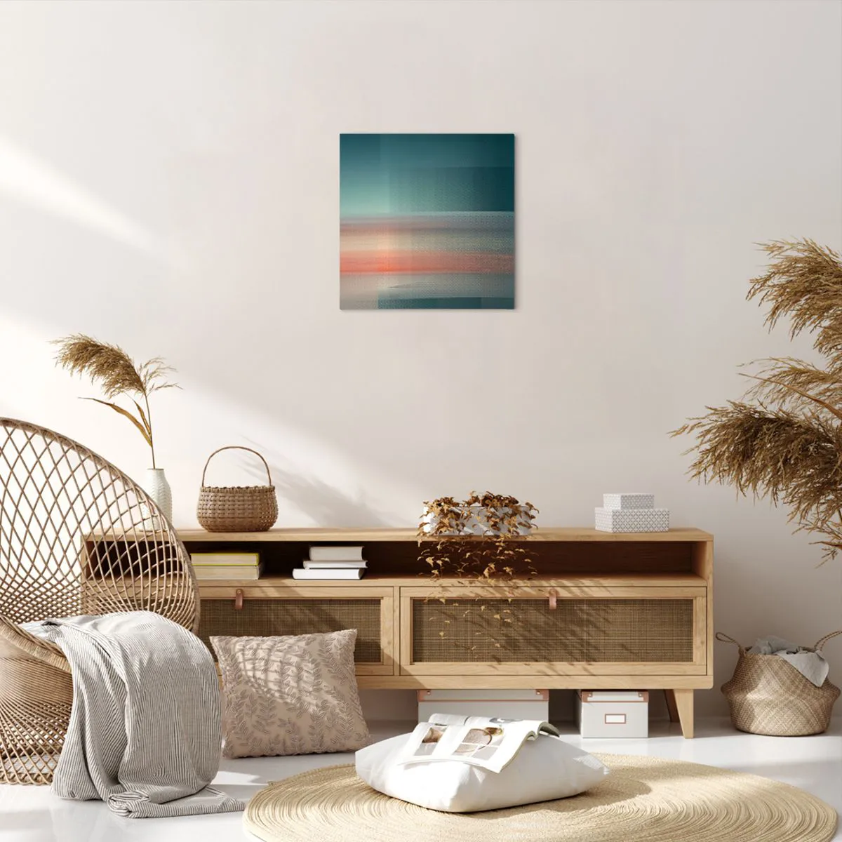 Wir verwenden ökologische, geruchslose und langlebige Tinten mit tiefer Farbsättigung. Durch moderne Drucktechnik wird der Druck präzise platziert, wobei die sichtbare Struktur der Leinwand erhalten bleibt