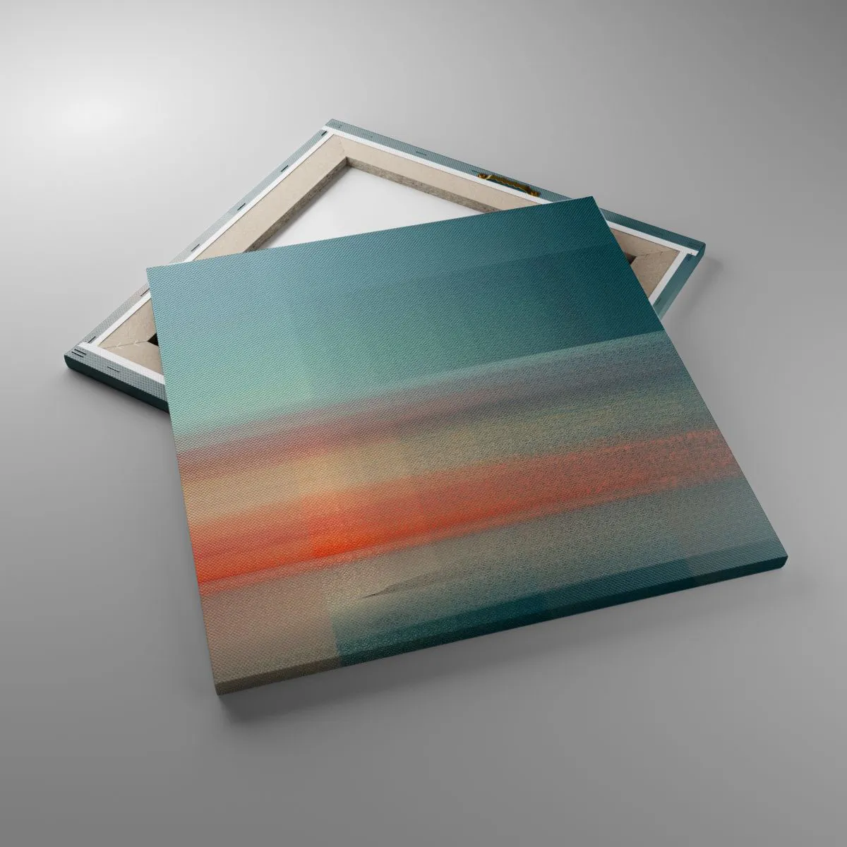 Die Leinwand wird über den Rahmen gespannt. Die Seiten und Kanten werden gedruckt, um das Bild fortzusetzen. Das Bild ist fertig zum Aufhängen an der Wand. Jedes Produkt hat einen am Rahmen befestigten Anhänger und ein Montageset (Schraube + Stift).