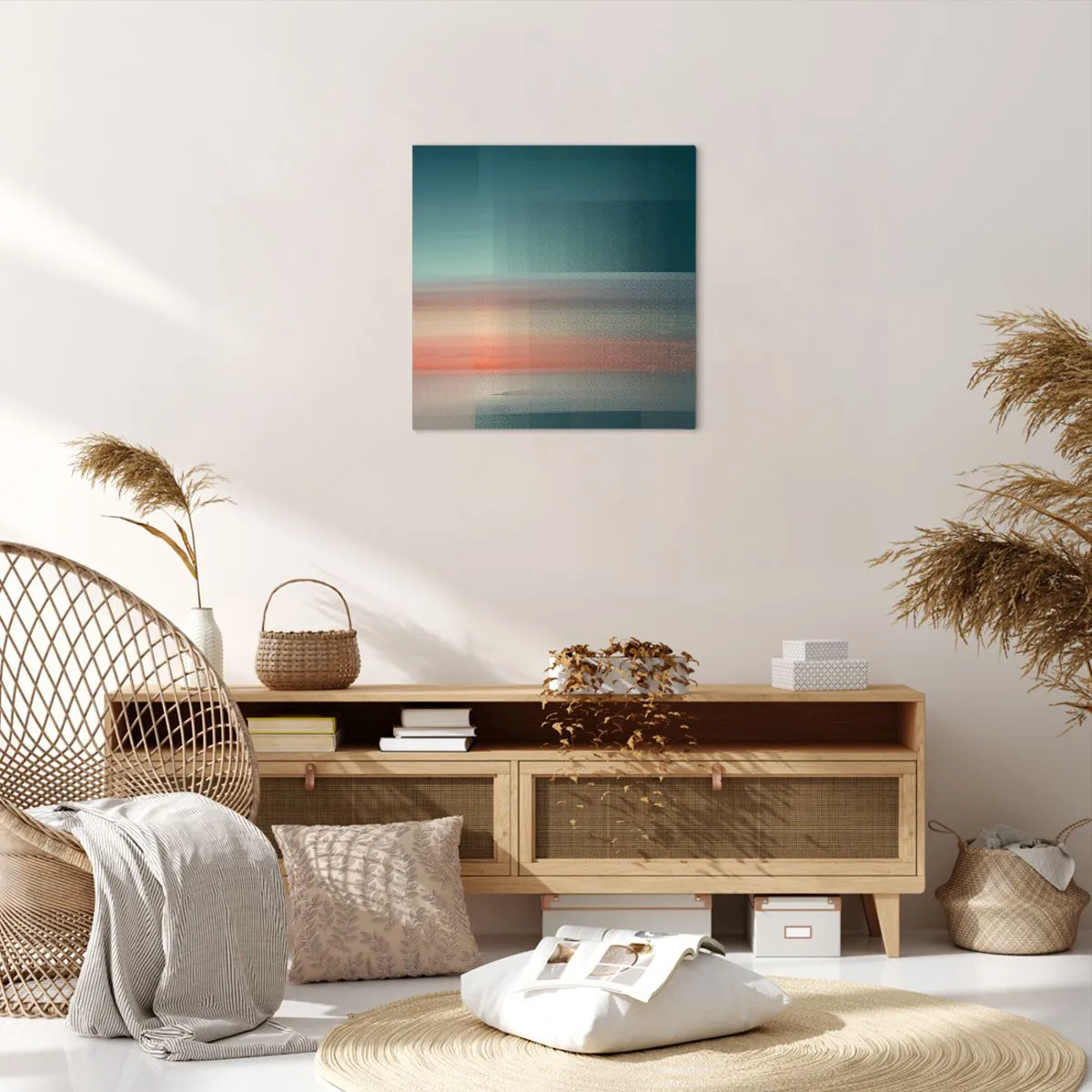 Wir verwenden ökologische, geruchslose und langlebige Tinten mit tiefer Farbsättigung. Durch moderne Drucktechnik wird der Druck präzise platziert, wobei die sichtbare Struktur der Leinwand erhalten bleibt