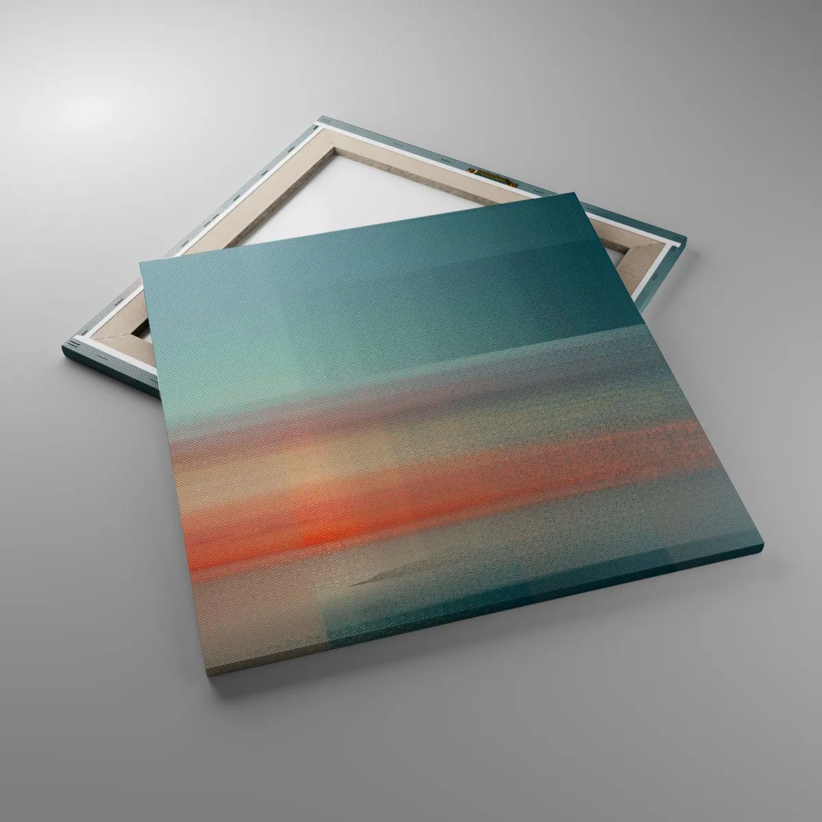 Die Leinwand wird über den Rahmen gespannt. Die Seiten und Kanten werden gedruckt, um das Bild fortzusetzen. Das Bild ist fertig zum Aufhängen an der Wand. Jedes Produkt hat einen am Rahmen befestigten Anhänger und ein Montageset (Schraube + Stift).