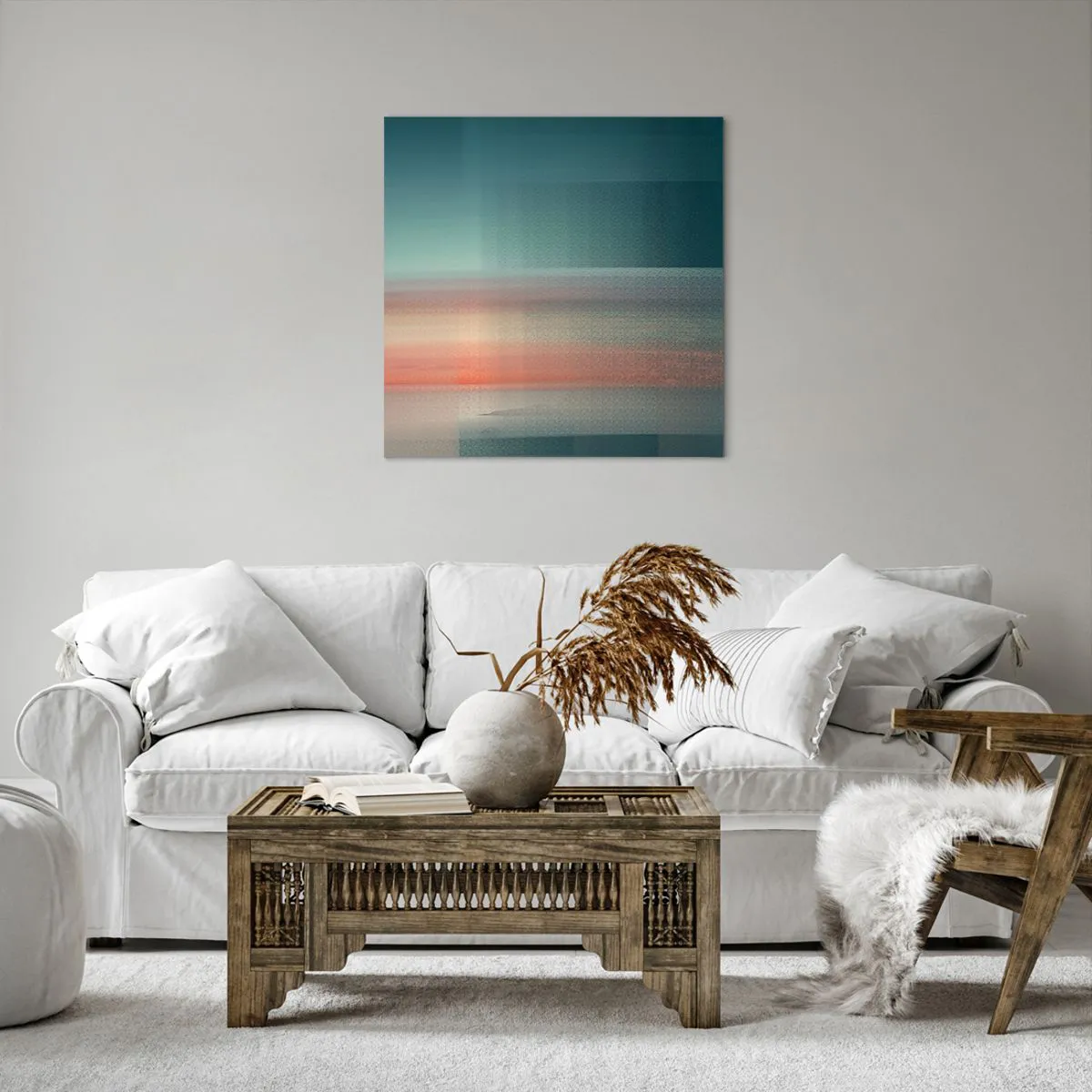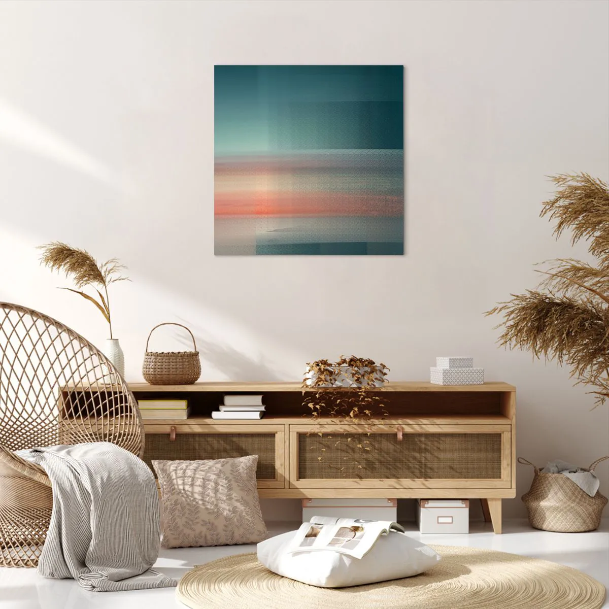 Wir verwenden ökologische, geruchslose und langlebige Tinten mit tiefer Farbsättigung. Durch moderne Drucktechnik wird der Druck präzise platziert, wobei die sichtbare Struktur der Leinwand erhalten bleibt