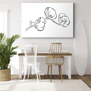 Die Leinwand wird über den Rahmen gespannt. Die Seiten und Kanten werden gedruckt, um das Bild fortzusetzen. Das Bild ist fertig zum Aufhängen an der Wand. Jedes Produkt hat einen am Rahmen befestigten Anhänger und ein Montageset (Schraube + Stift).