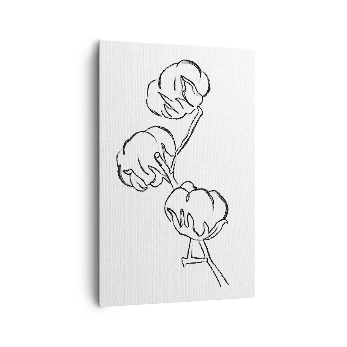 Bild auf Leinwand - Leinwandbild - Ein zarter Umriss eines Baumwollzweigs auf weißem Hintergrund - 80x120cm - Baumwolldaunen - Moderne Wanddekoration für Wohnzimmer und Schlafzimmer ARTTOR