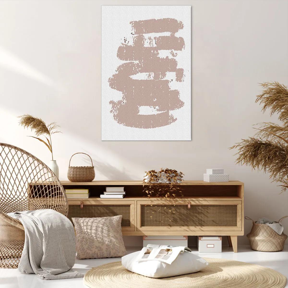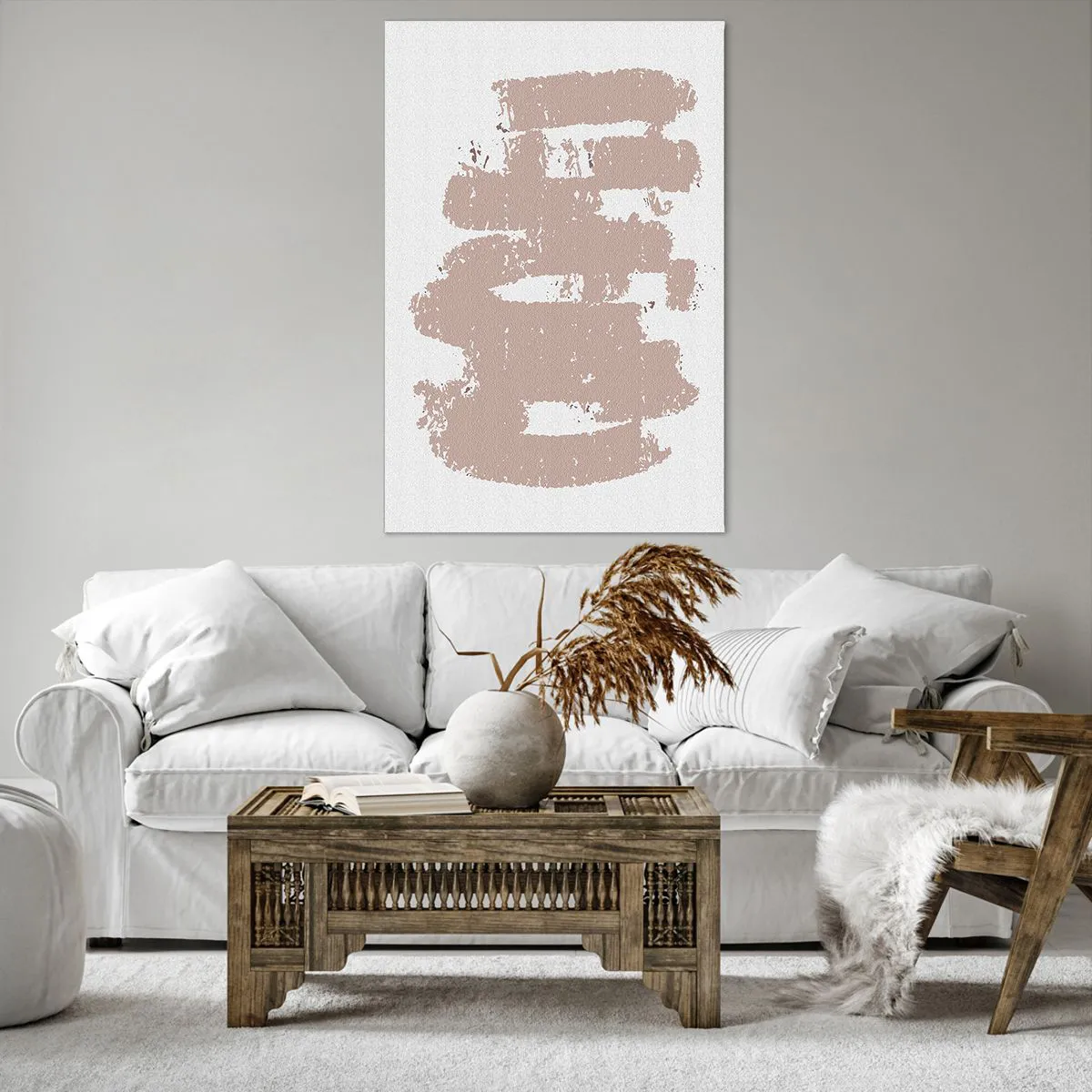 Bild auf Leinwand - Leinwandbild - Zartrosa Formen auf hellem Hintergrund - 80x120cm - Abstraktion in zartem Rosa - Moderne Wanddekoration für Wohnzimmer und Schlafzimmer ARTTOR