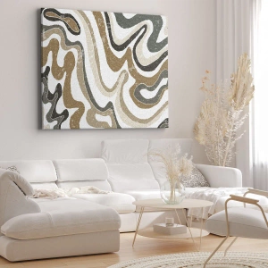 „Meanders of Earthy Colors“ ist eine ausgezeichnete Wahl für alle, die natürliche Motive und subtile Dekorationen schätzen. Dieses Gemälde kann zum Hauptakzent eines Interieurs werden und Harmonie und eine natürliche, von der Erde inspirierte Atmosphäre schaffen.