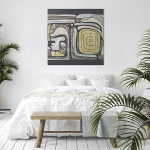 „Abstraktion im präkolumbianischen Geist“ ist ein außergewöhnliches Gemälde auf Leinwand, das Exotik und Modernität vereint. Von präkolumbianischer Kunst inspirierte Muster in Pastellfarben bilden einen subtilen Kontrast zum dunklen Hintergrund und schaffen eine einzigartige und harmonische Komposition. Das Format 70 x 50 cm macht das Gemälde ideal für eine Vielzahl von Innenräumen.